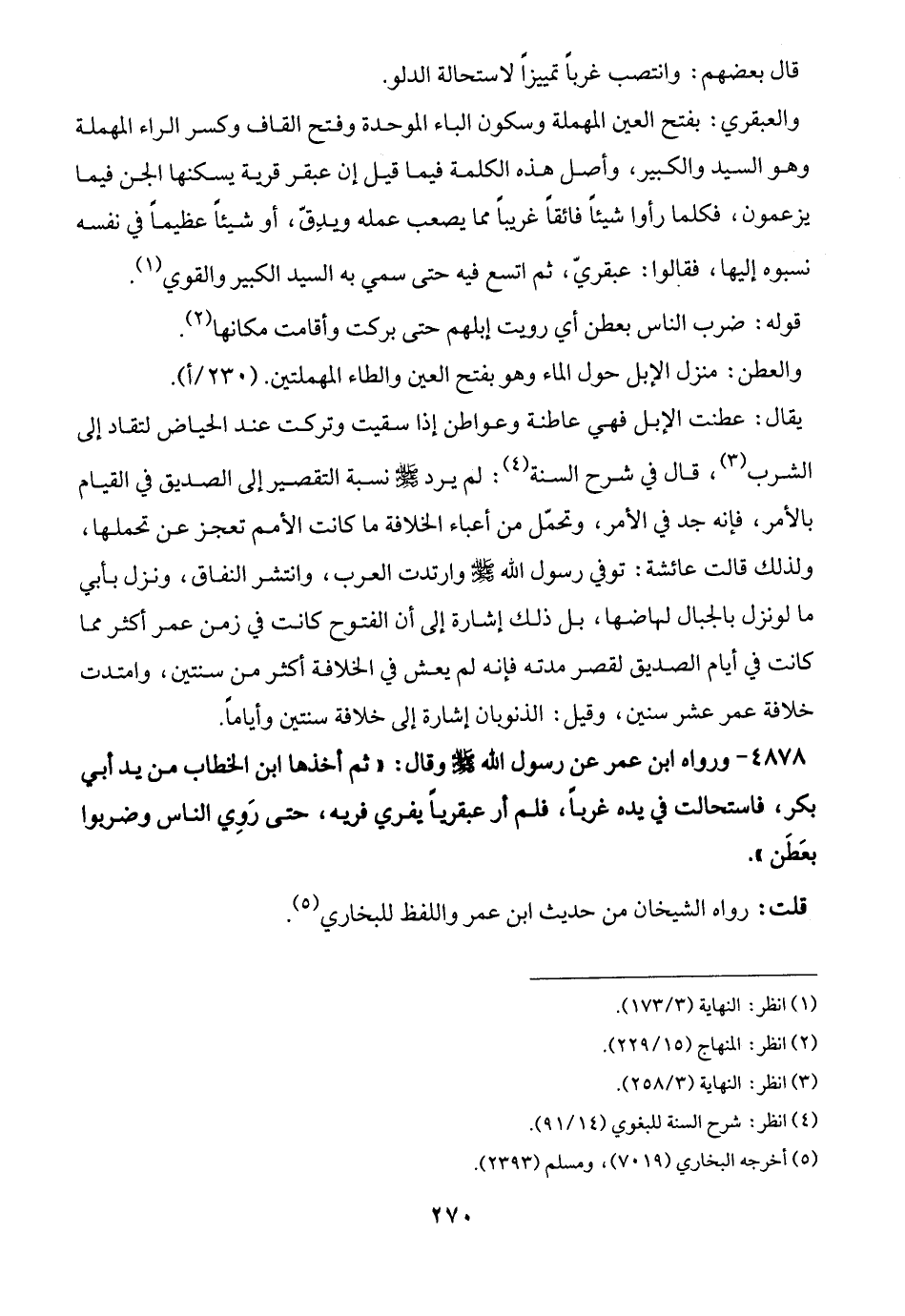 4878 - ورواه ابن عمر عن رسول الله -صلى الله عليه وسلم- وقال: "ثم أخذها ابن الخطاب من يد أبي بكر، فاستحالت في يده غربًا، فلم أر عبقريًّا يفري فريه، حتى رَوِي الناس وضربوا بعَطَن".