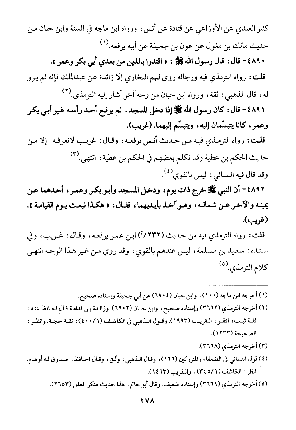 (¬5) أخرجه الترمذي (3669) وإسناده ضعيف. وقال أبو حاتم: هذا حديث منكر العلل (2653).