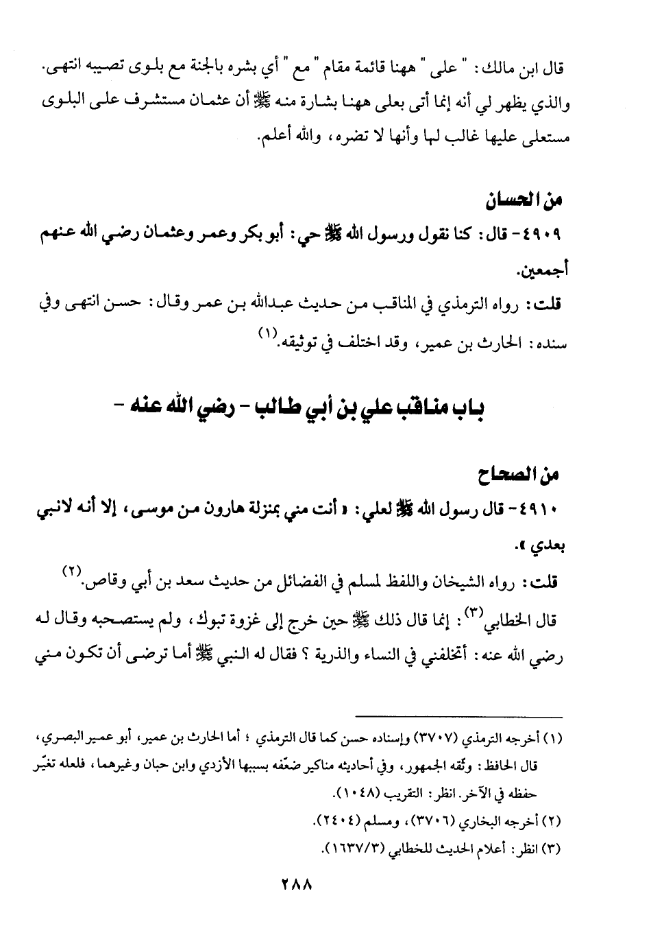 (¬1) أخرجه الترمذي (3707) وإسناه حسن كما قال الترمذي؛ أما الحارث بن عمير، أبو عمير البصري، قال الحافظ: وثّقه الجمهور، وفي أحاديثه مناكير ضعّفه بسببها الأزدي وابن حبان وغيرهما، فلعله تغيّر حفظه في الآخر. انظر: التقريب (1048).