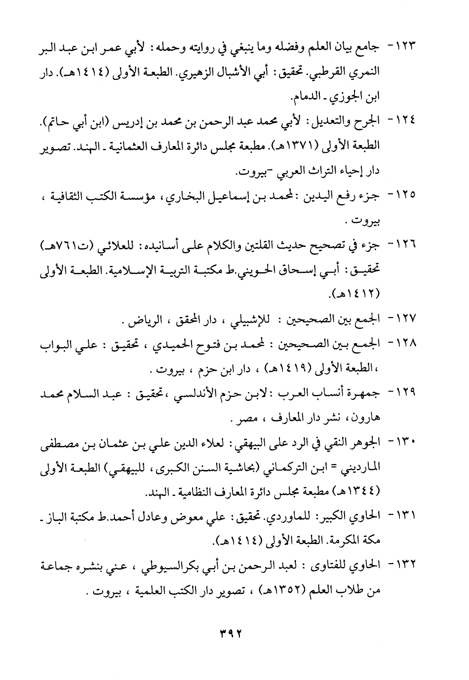 123 - جامع بيان العلم وفضله وما ينبغي في روايته وحمله: لأبي عمر ابن عبد البر النمري القرطبي. تحقيق: أبي الأشبال الزهيري. الطبعة الأولى (1414 هـ). دار ابن الجوزي - الدمام.