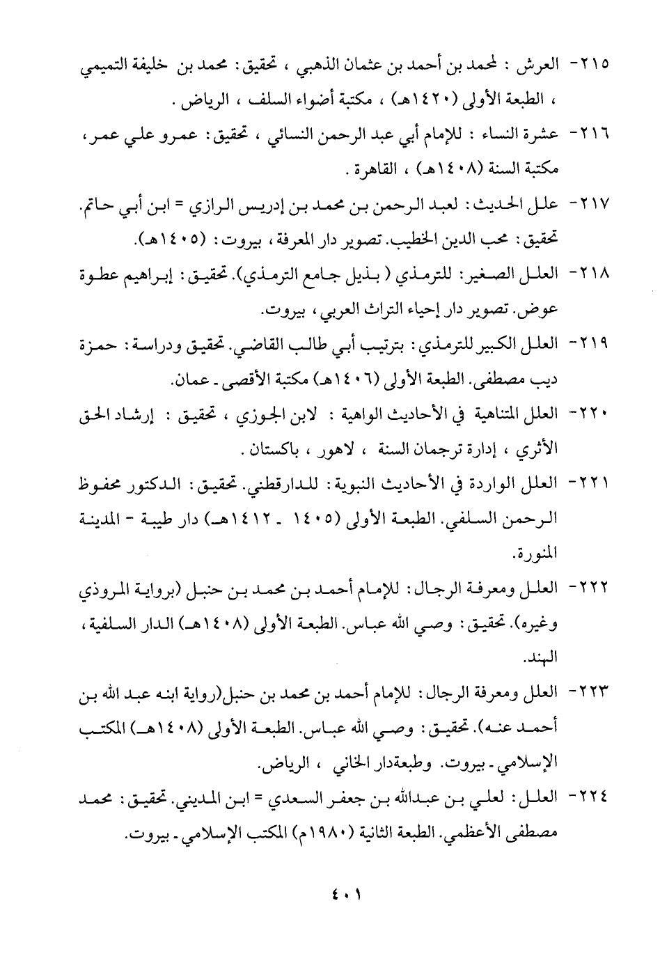 218 - العلل الصغير: للترمذي (بذيل جامع الترمذي). تحقيق: إبراهيم عطوة عوض. تصوير دار إحياء التراث العربي، بيروت.