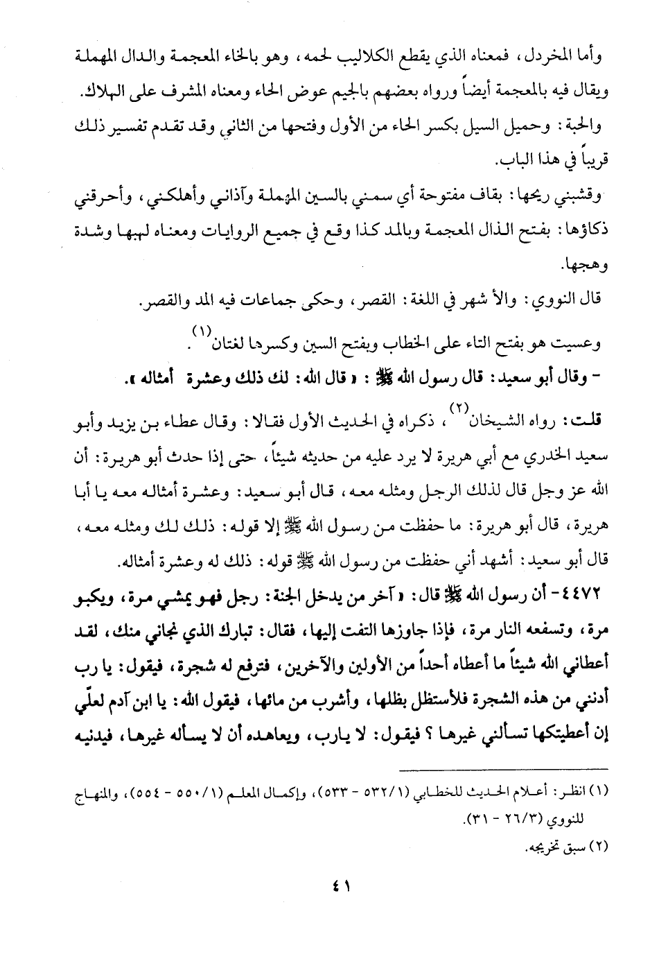 (¬1) انظر: أعلام الحديث للخطابي (1/ 532 - 533)، وإكمال المعلم (1/ 550 - 554)، والمنهاج للنووي (3/ 26 - 31).
