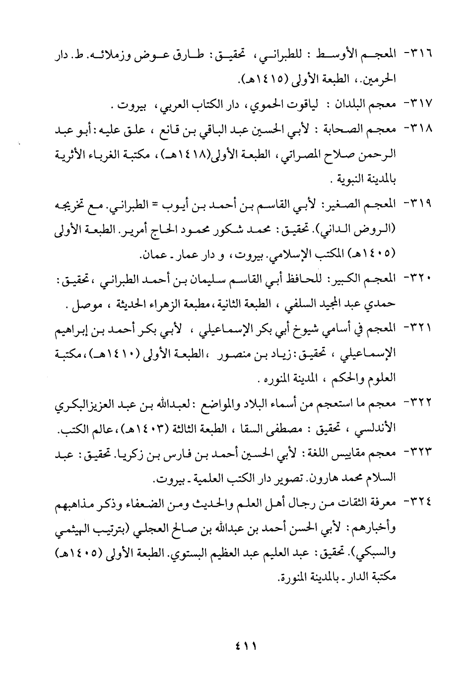 316 - المعجم الأوسط: للطبراني، تحقيق: طارق عوض وزملائه. ط. دار الحرمين، الطبعة الأولى (1415هـ).