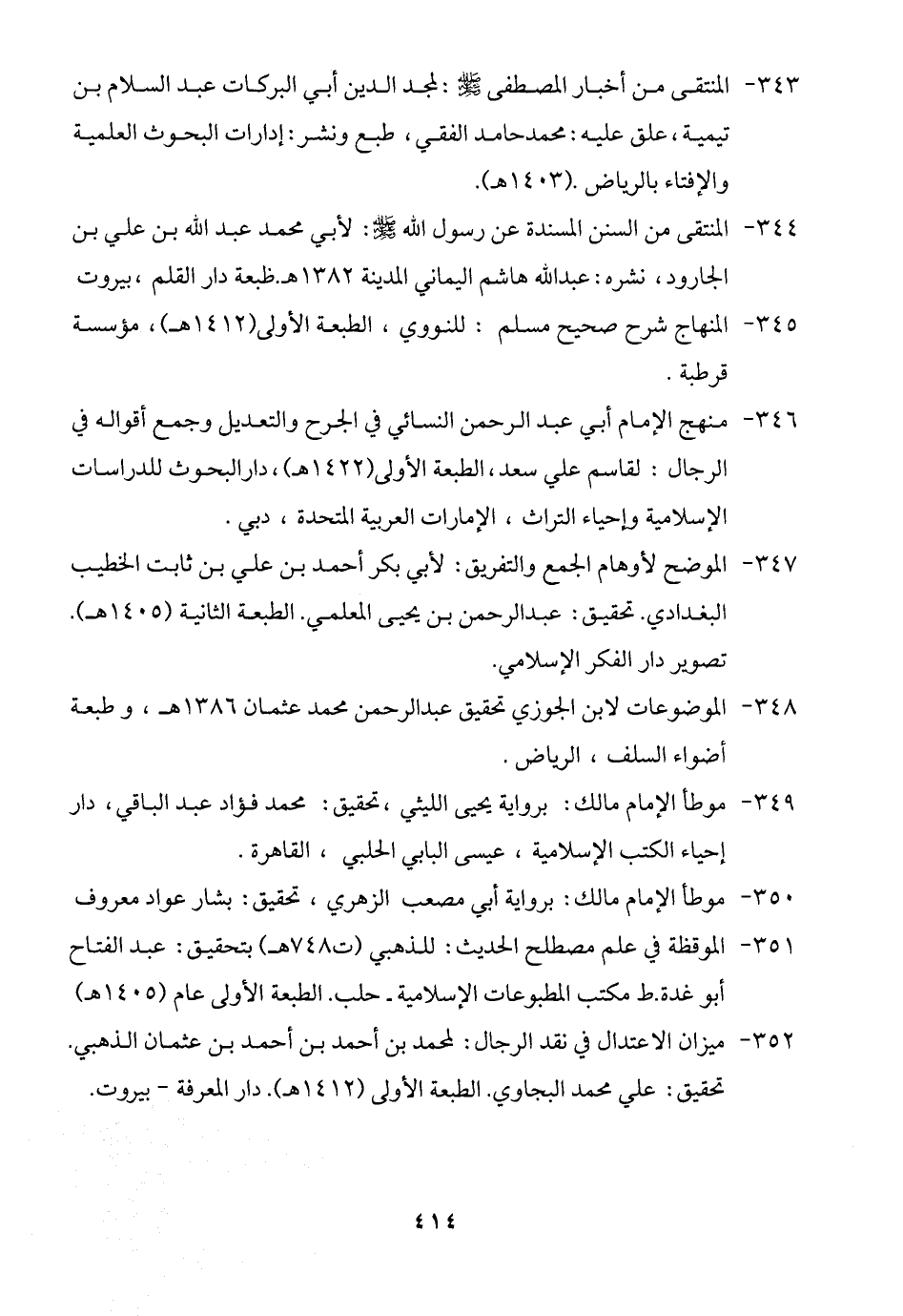 343 - المنتقى من أخبار المصطفى - صلى الله عليه وسلم -: لمجد الدين أبي البركات عبد السلام بن تيمية، علق عليه: محمد حامد الفقي، طبع ونشر: إدارات البحوث العلمية والإفتاء بالرياض. (1403هـ).