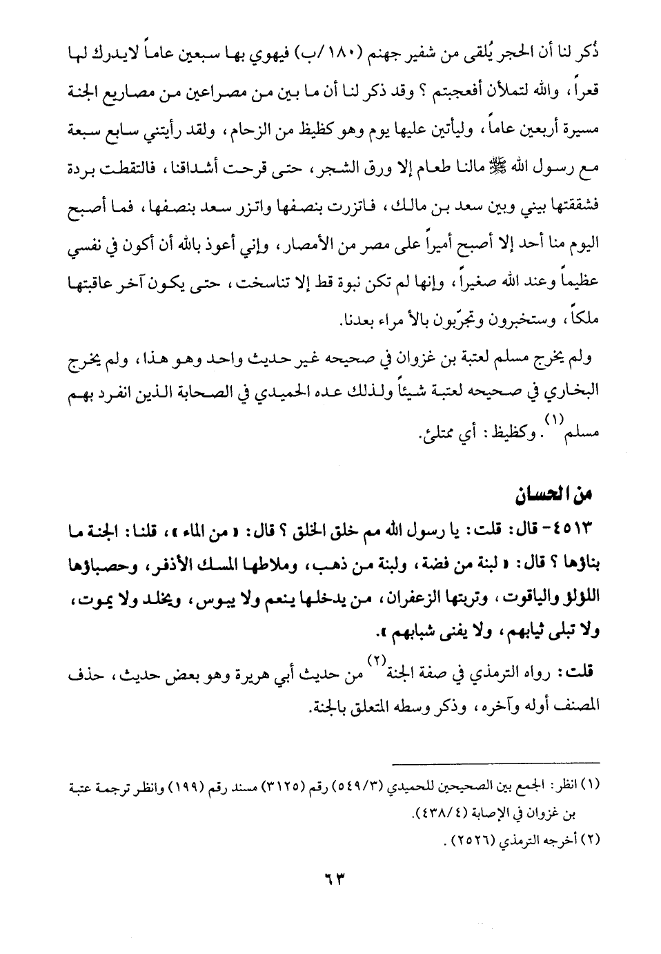 (¬1) انظر: الجمع بين الصحيحين للحميدي (3/ 549) رقم (3125) مسند رقم (199) وانظر ترجمة عتبة بن غزوان في الإصابة (4/ 438).