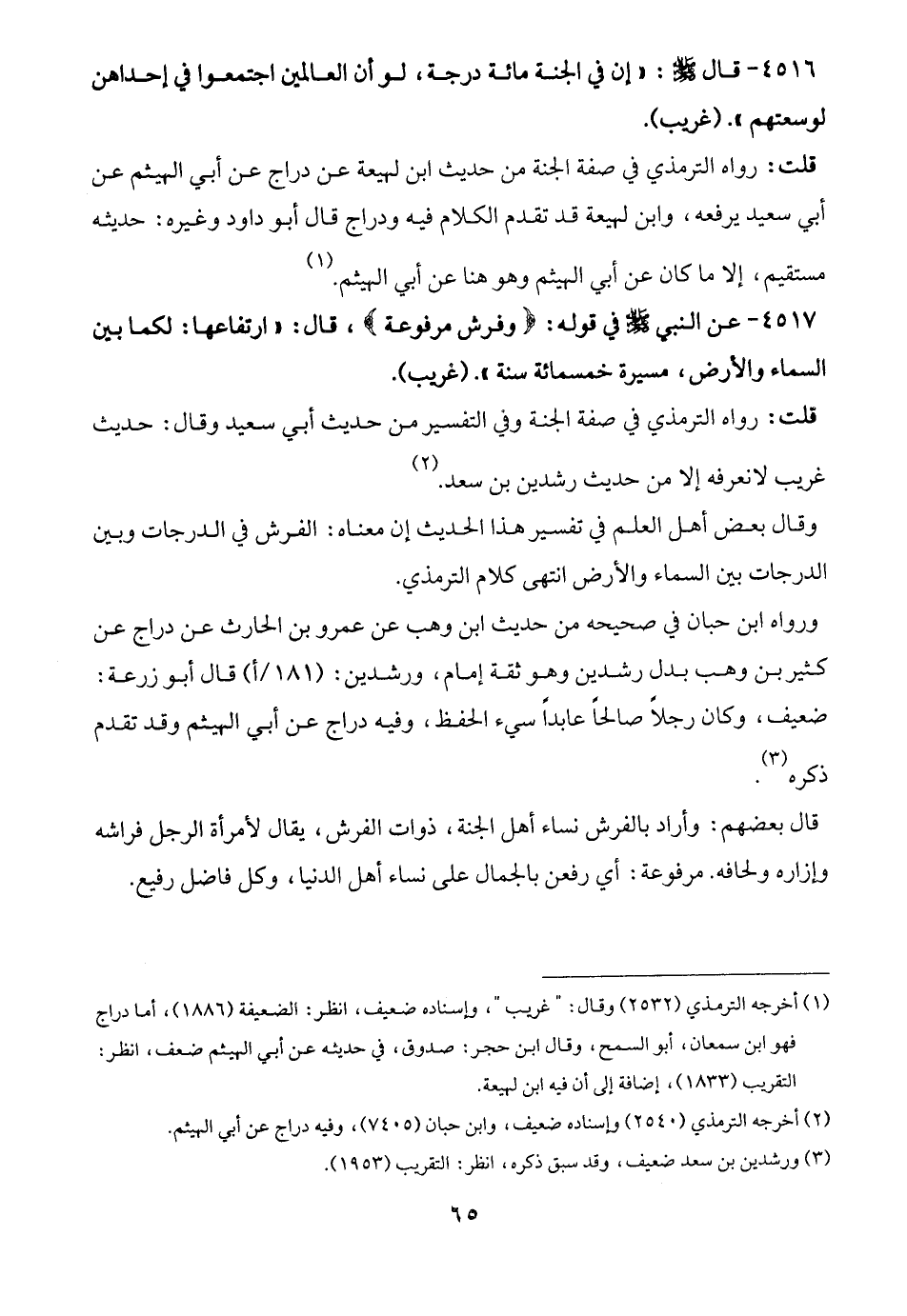قلت: رواه الترمذي في صفة الجنة من حديث ابن لهيعة عن دراج عن أبي الهيثم عن أبي سعيد يرفعه، وابن لهيعة قد تقدم الكلام فيه ودراج قال أبو داود وغيره: حديثه مستقيم، إلا ما كان عن أبي الهيثم وهو هنا عن أبي الهيثم. (¬1)