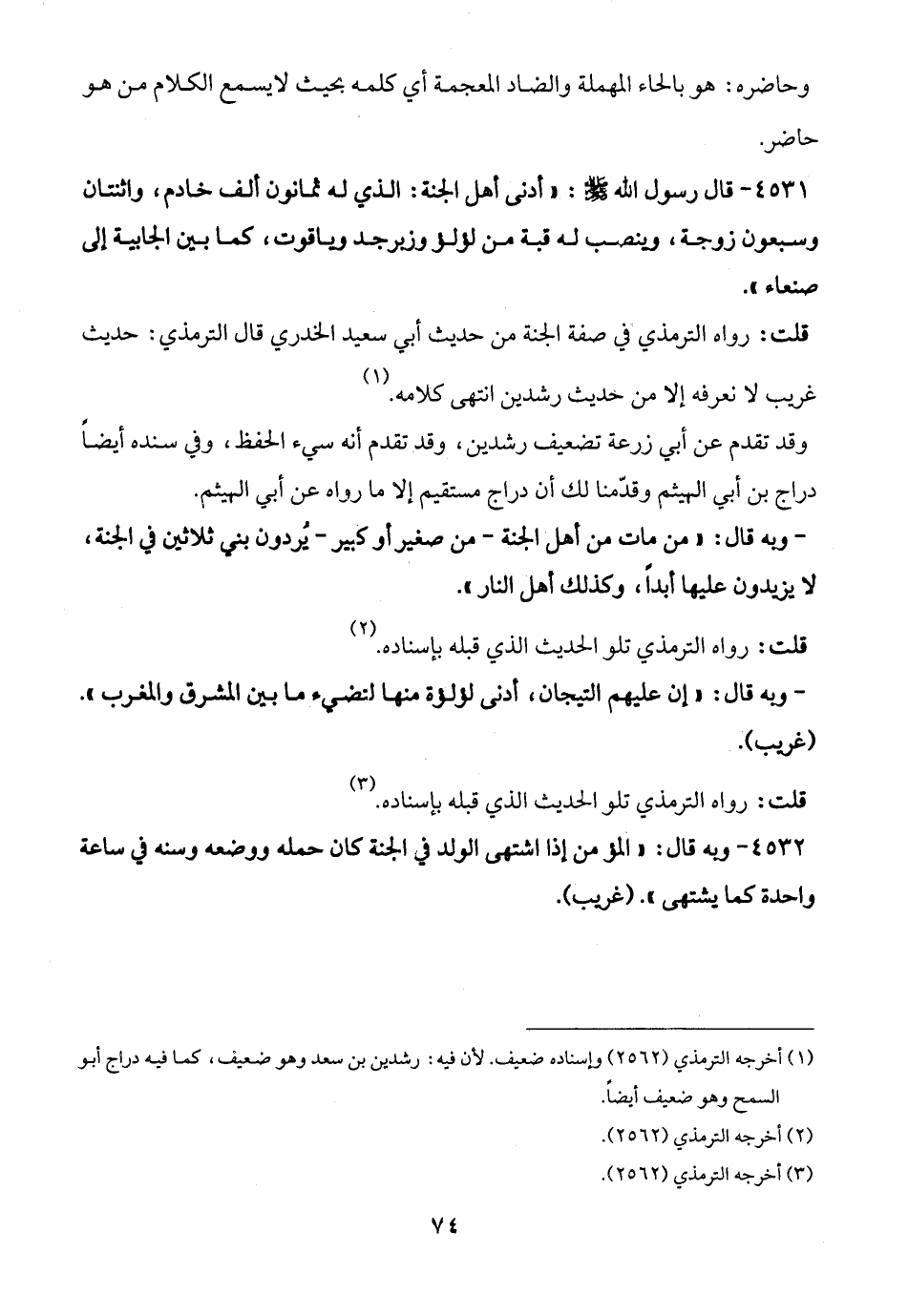 (¬1) أخرجه الترمذي (2562) وإسناده ضعيف. لأن فيه: رشدين بن سعد وهو ضعيف، كما فيه دراج أبو السمح وهو ضعيف أيضًا.