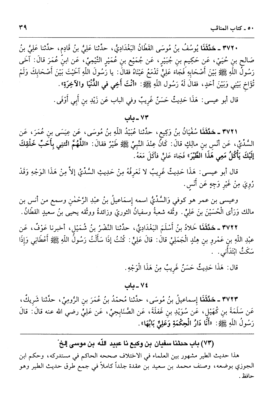 هذا حديث الطير مشهور بين العلماء في الاختلاف صححه الحاكم في مستدركه، وحكم ابن الجوزي بوضعه، وصنف محمد بن سعيد بن عقدة جلداً كاملاً في جمع طرق حديث الطير وهو حافظ.