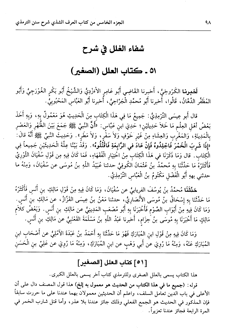 هذا الكتاب يسمى بالعلل الصغرى وللترمذي كتاب آخر يسمى بالعلل الكبرى.