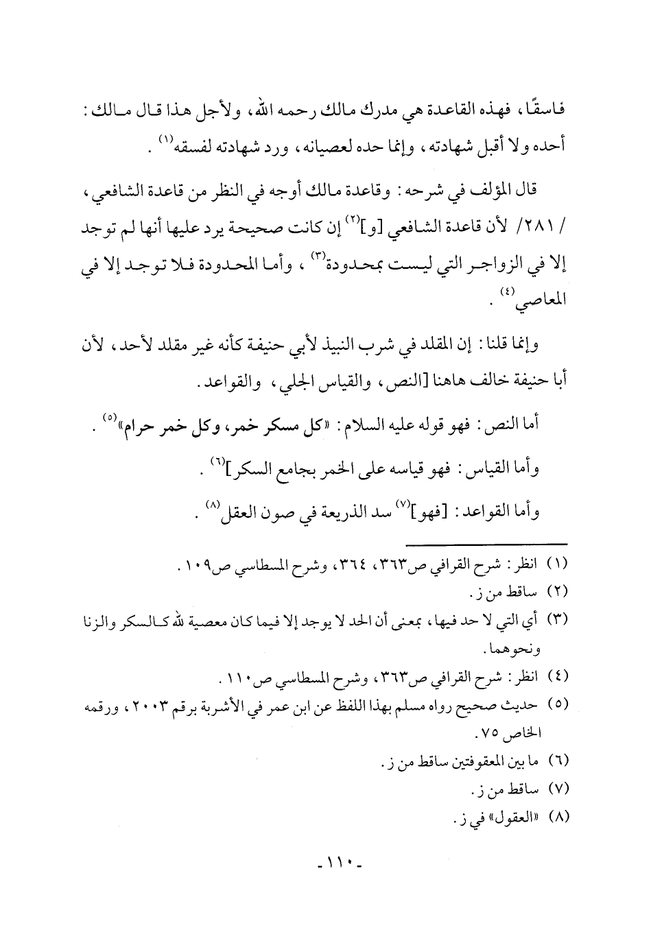 (١) انظر: شرح القرافي ص ٣٦٣، ٣٦٤، وشرح المسطاسي ص ١٠٩.