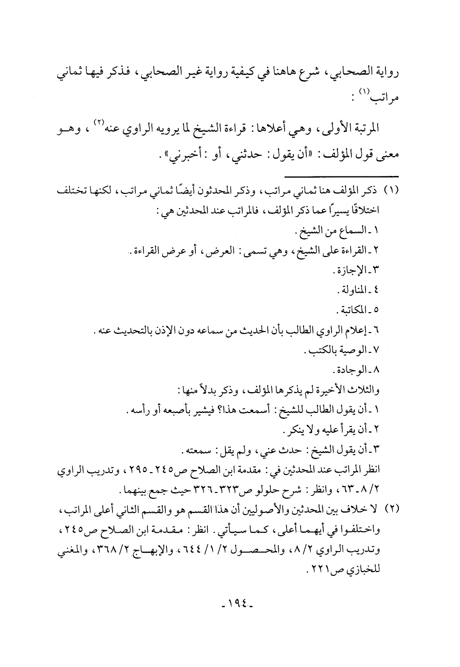 رواية الصحابي، شرع ها هنا في كيفية رواية غير الصحابي، فذكر فيها ثماني مراتب (١):
