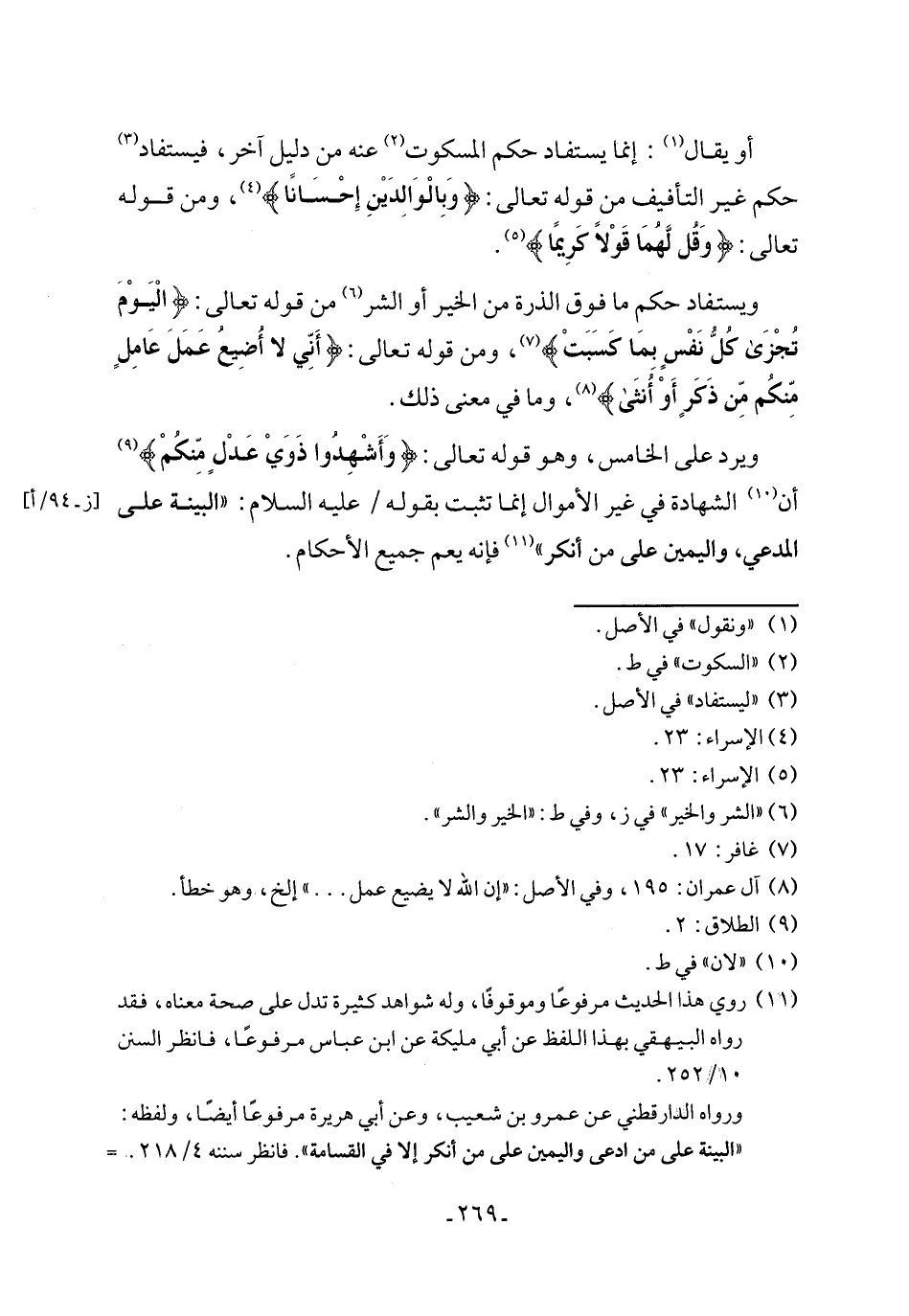 ويستفاد حكم ما فوق الذرة من الخير أو الشر (٦) من قوله تعالى: {الْيَوْمَ تُجْزَى كُلُّ نَفْسٍ بِمَا كسَبَتْ} (٧)، ومن قوله تعالى: {أَنِّي لَا أُضِيعُ عَمَلَ عَامِلٍ مِّنكُم مِّن ذَكَرٍ أَوْ أُنثَى} (٨)، وما في معنى ذلك.
