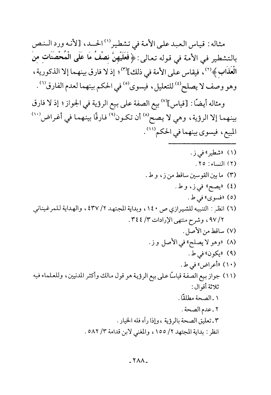 (١١) جواز بيع الصفة قياسًا على بيع الرؤية هو قول مالك وأكثر المدنيين، وللعلماء فيه ثلاثة أقوال: