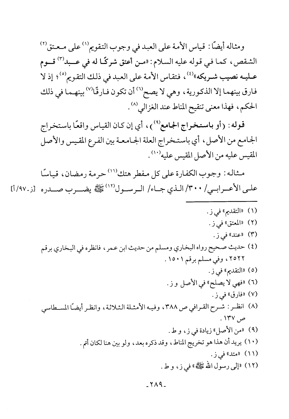 (١٠) يريد أن هذا هو تخريج المناط، وقد ذكره بعد، ولو بين هنا لكان أتم.