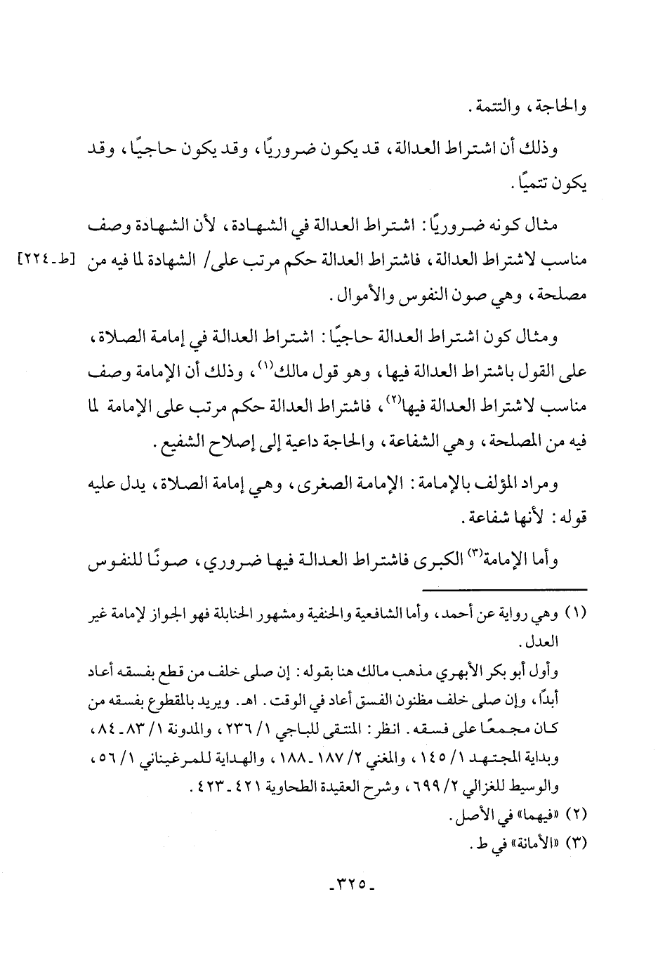 وذلك أن اشتراط العدالة، قد يكون ضروريًا، وقد يكون حاجيًا، وقد يكون تتميًا.
