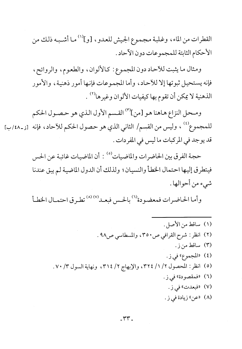 وأما الحاضرات فمعضودة (٦) بالحس فبعد (٧) (٨) تطرق احتمال الخطأ