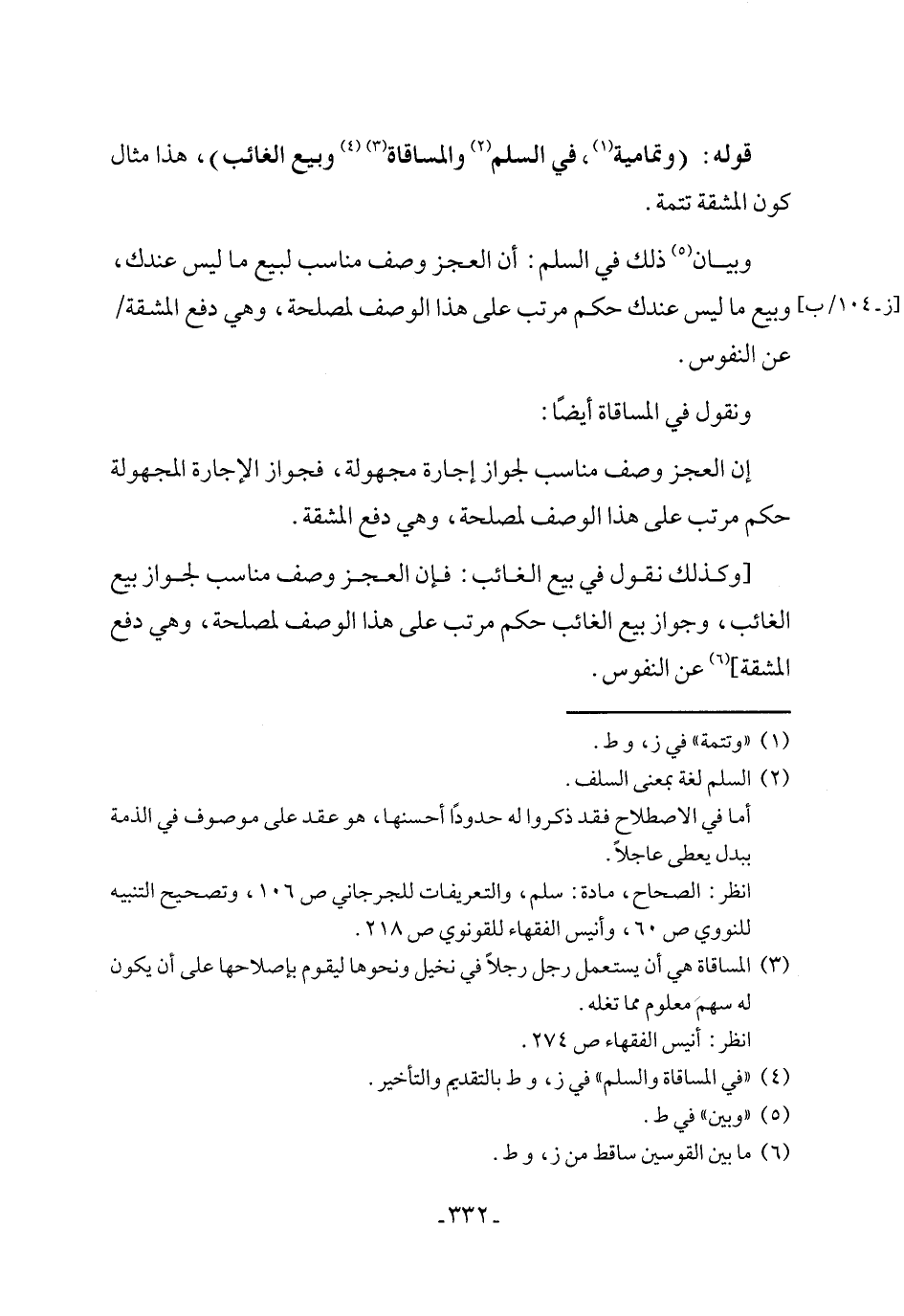(٤) "في المساقاة والسلم" في ز، وط بالتقديم والتأخير.