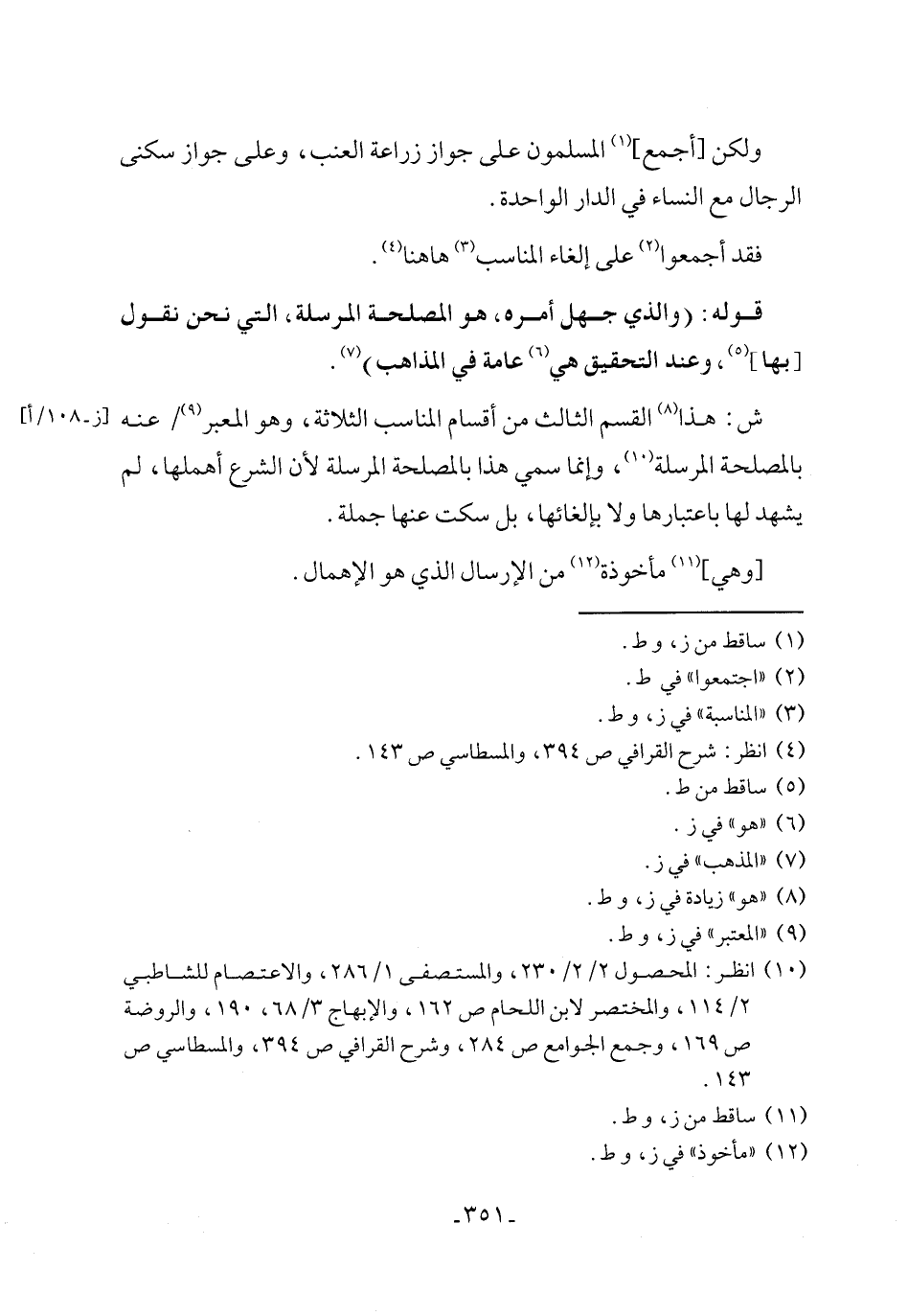 (١٠) انظر: المحصول ٢/ ٢/ ٢٣٠، والمستصفى ١/ ٢٨٦، والاعتصام للشاطبي ٢/ ١١٤، والمختصر لابن اللحام ص ١٦٢، والإبهاج ٣/ ٦٨، ١٩٠، والروضة ص ١٦٩، وجمع الجوامع ص ٢٨٤، وشرح القرافي ص ٣٩٤، والمسطاسي ص ١٤٣.