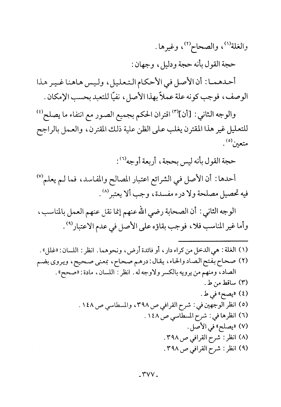 (٨) انظر: شرح القرافي ص ٣٩٨.