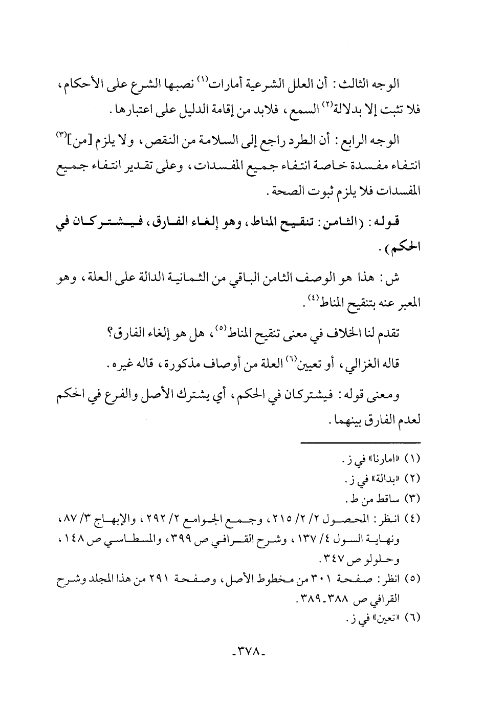 (٥) انظر: صفحة ٣٠١ من مخطوط الأصل، وصفحة ٢٩١ من هذا المجلد وشرح القرافي ص ٣٨٨ - ٣٨٩.