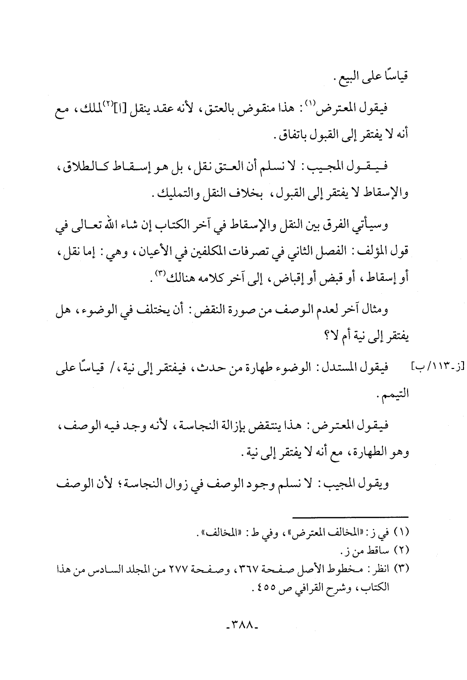 (٣) انظر: مخطوط الأصل صفحة ٣٦٧، وصفحة ٢٧٧ من المجلد السادس من هذا الكتاب، وشرح القرافي ص ٤٥٥.