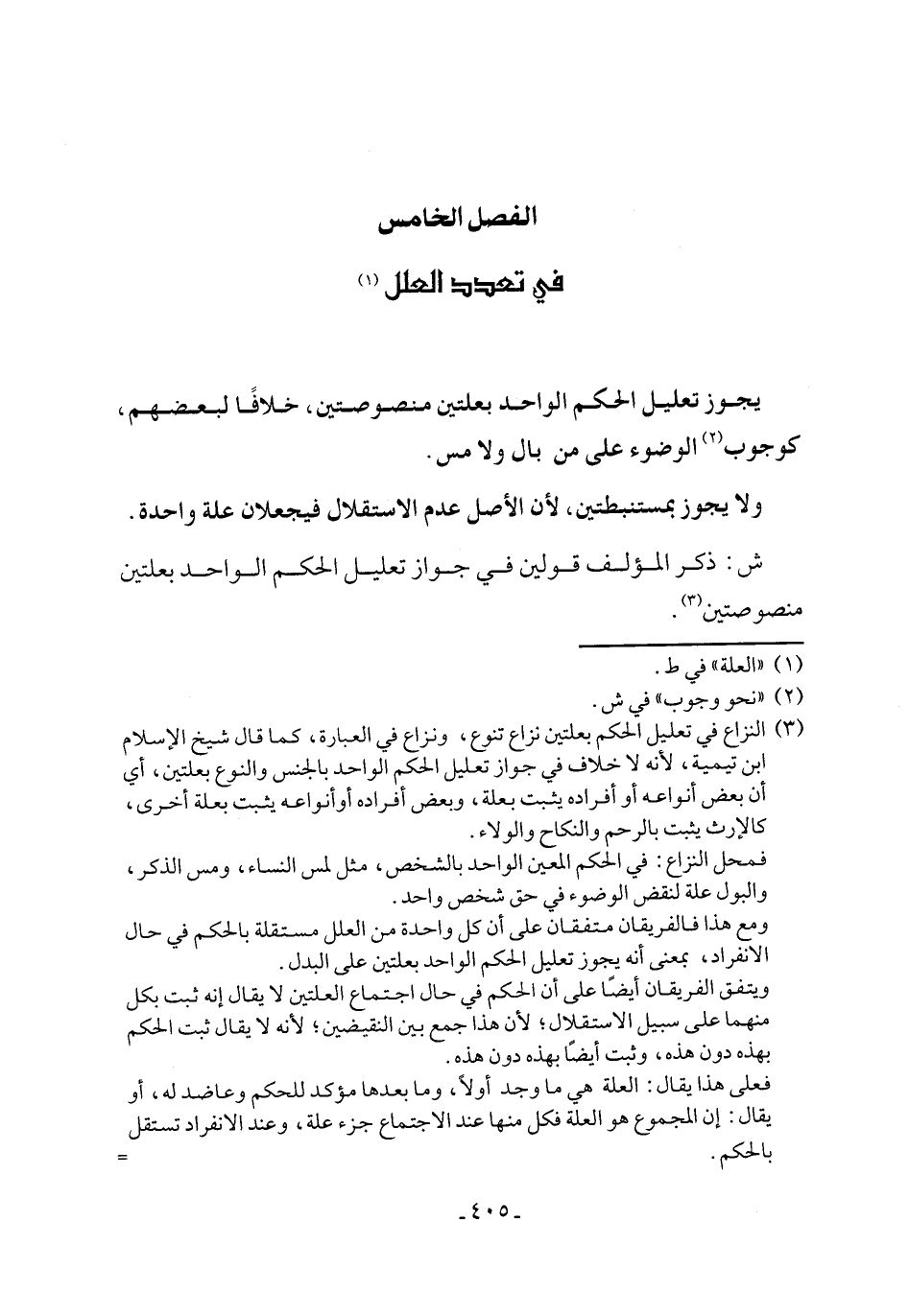 الفصل الخامس في تعدد العلل (١)