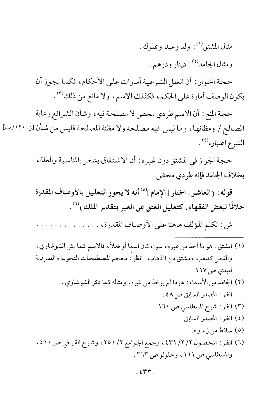 (٦) انظر: المحصول ٢/ ٢/ ٤٣١، وجمع الجوامع ٢/ ٢٥١، وشرح القرافي ص ٤١٠، والمسطاسي ص ١٦١، وحلولو ص ٣٦٣.