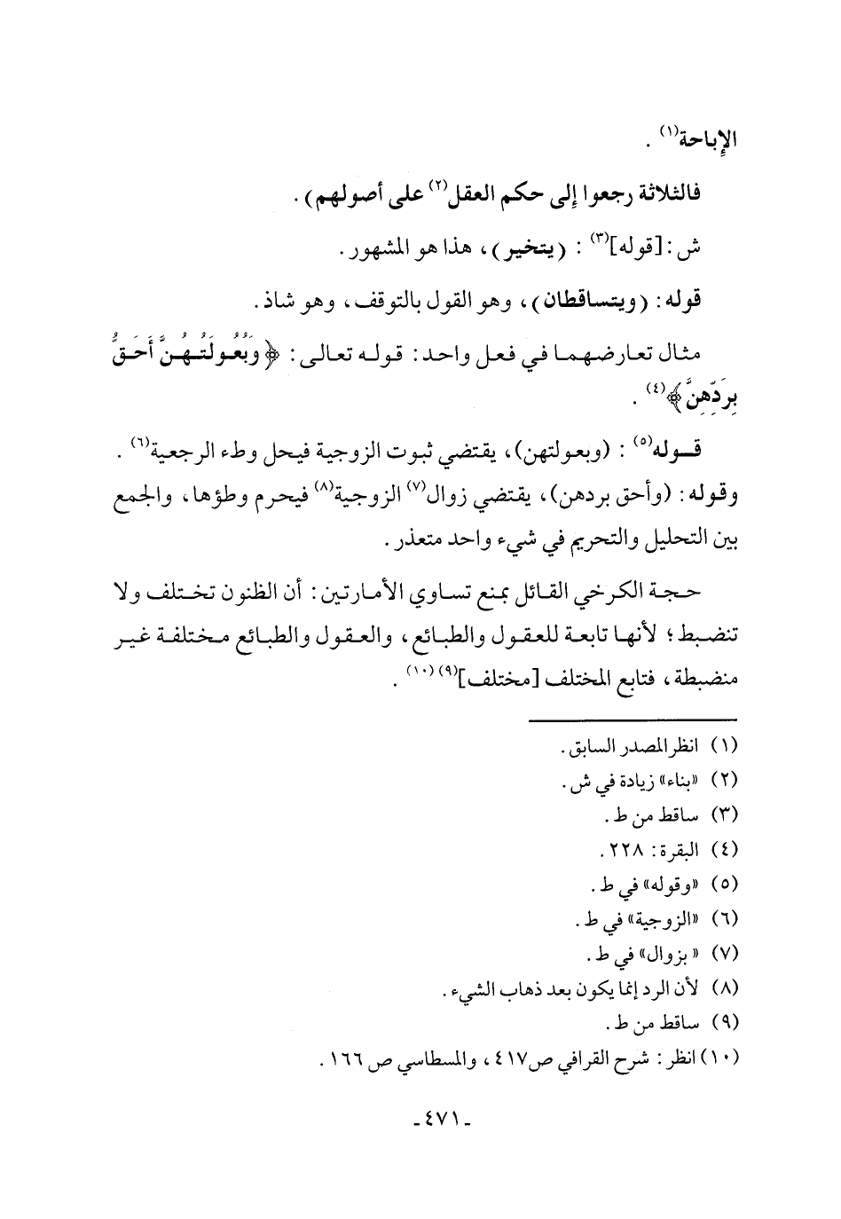 (١٠) انظر: شرح القرافي ص ٤١٧، والمسطاسي ص ١٦٦.