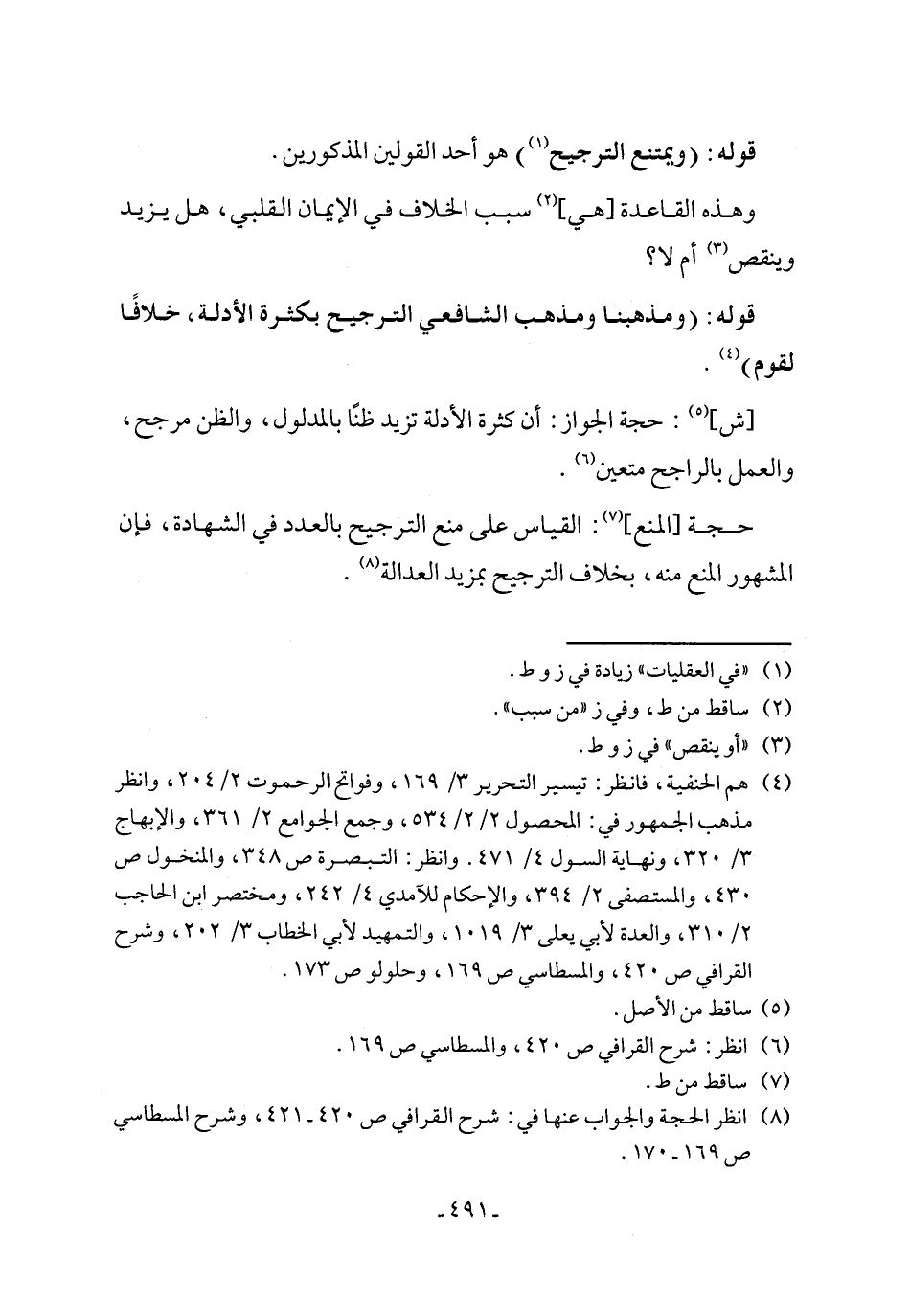 (٨) انظر الحجة والجواب عنها في: شرح القرافي ص ٤٢٠ - ٤٢١، وشرح المسطاسي ص ١٦٩ - ١٧٠.