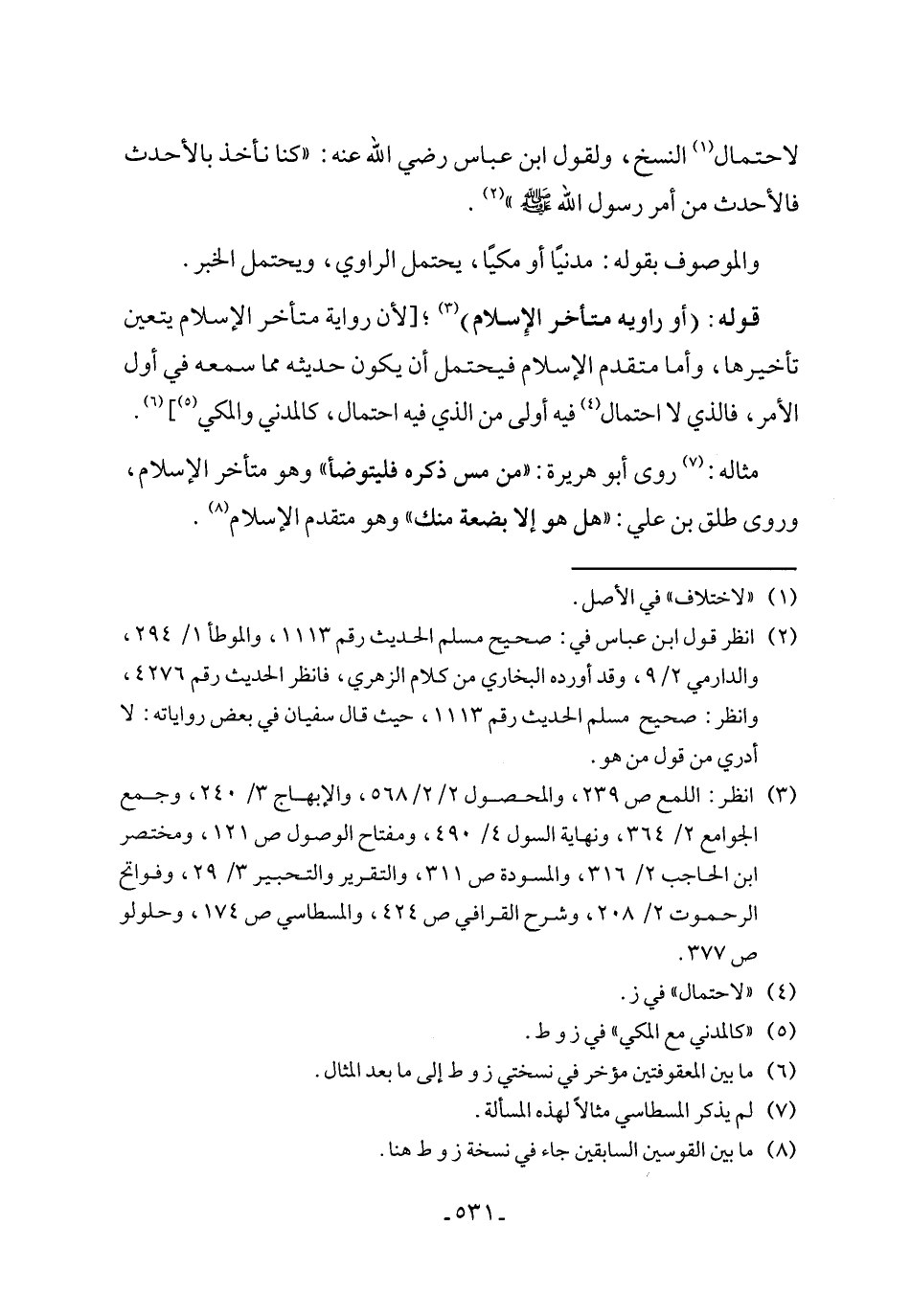 (٣) انظر: اللمع ص ٢٣٩، والمحصول ٢/ ٢/ ٥٦٨، والإبهاج ٣/ ٢٤٠، وجمع الجوامع ٢/ ٣٦٤، ونهاية السول ٤/ ٤٩٠، ومفتاح الوصول ص ١٢١، ومختصر ابن الحاجب ٢/ ٣١٦، والمسودة ص ٣١١، والتقرير والتحبير ٣/ ٢٩، وفواتح الرحموت ٢/ ٢٠٨، وشرح القرافي ص ٤٢٤، والمسطاسي ص ١٧٤، وحلولو ص ٣٧٧.