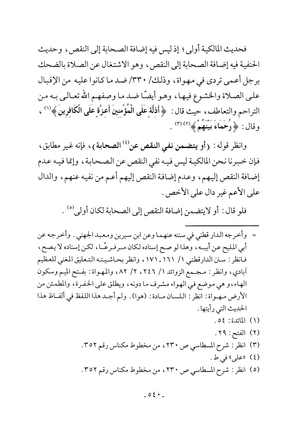 وانظر قوله: (أو يتضمن نفي النقص عن (٤) الصحابة)، فإنه غير مطابق، فإن خبرنا نحن المالكية ليس فيه نفي النقص عن الصحابة، وإنما فيه عدم إضافة النقص إليهم، وعدم إضافة النقص إليهم أعم من نفيه عنهم، والدال على الأعم غير دال على الأخص.