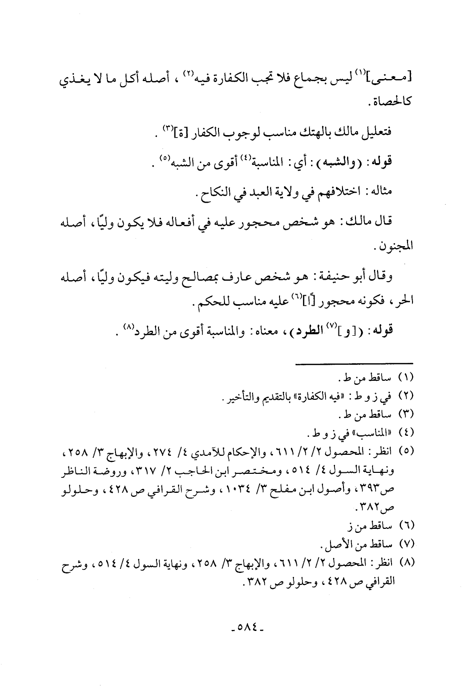 (٨) انظر: المحصول ٢/ ٢/ ٦١١، والإبهاج ٣/ ٢٥٨، ونهاية السول ٤/ ٥١٤، وشرح القرافي ص ٤٢٨، وحلولو ص ٣٨٢.