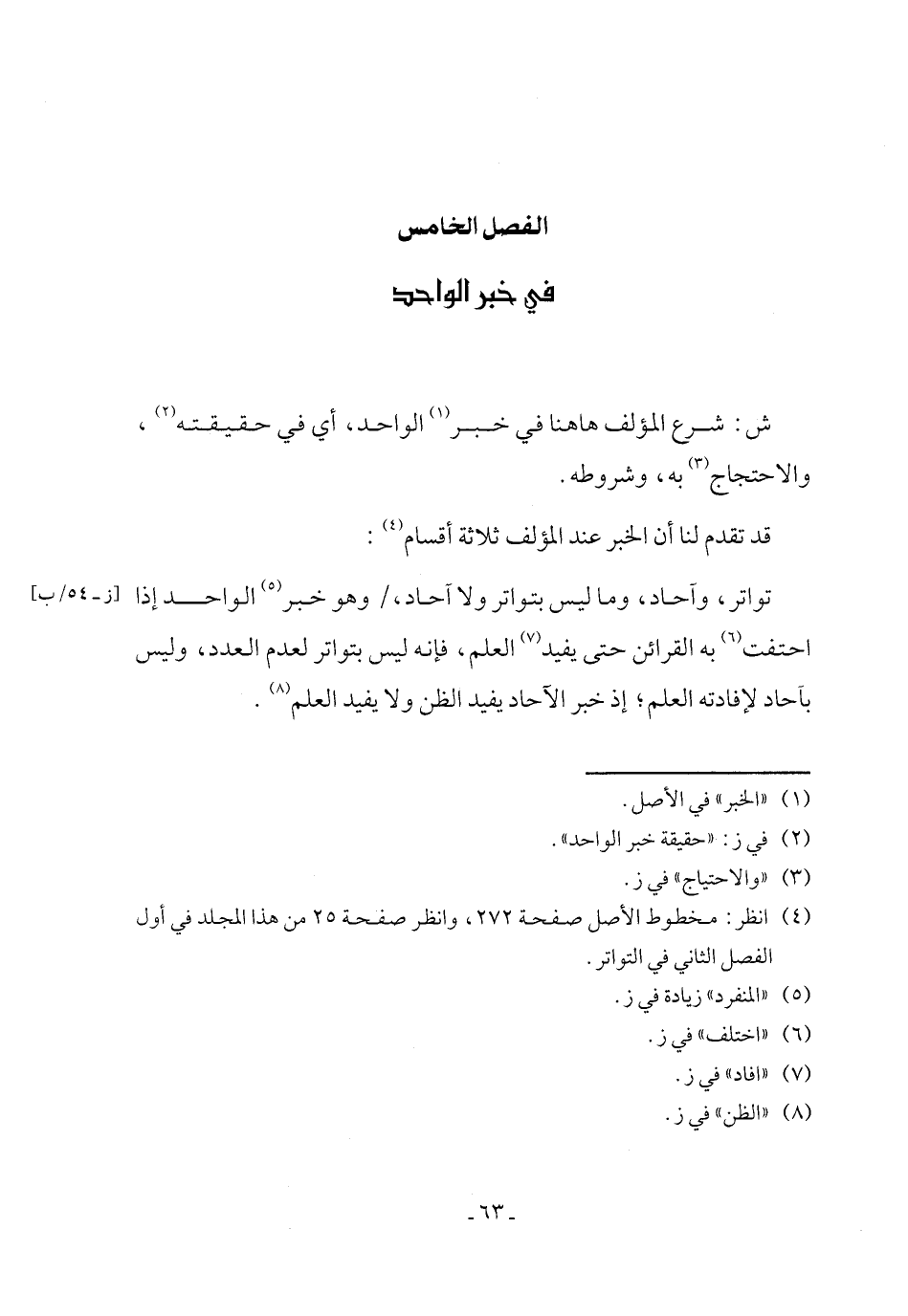 الفصل الخامس في خبر الواحد