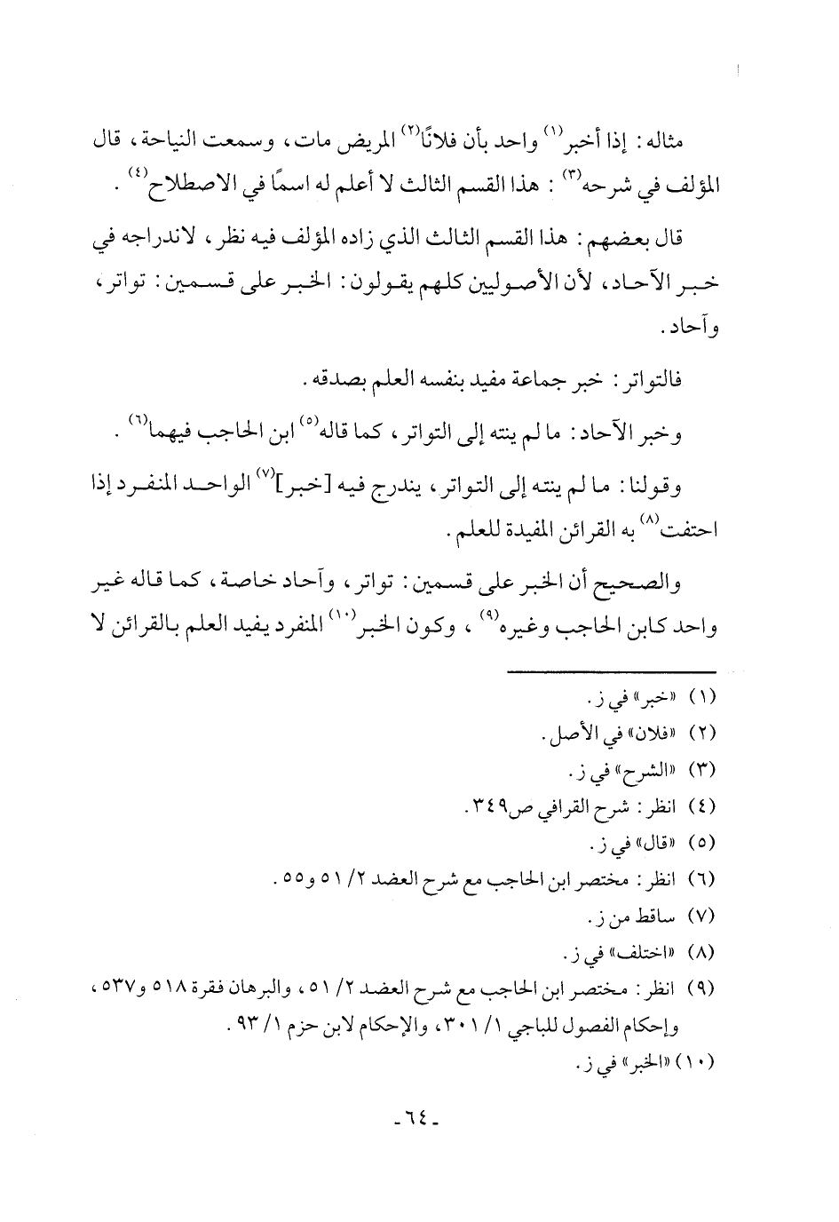 (٩) انظر: مختصر ابن الحاجب مع شرح العضد ٢/ ٥١، والبرهان فقرة ٥١٨ و٥٣٧، وإحكام الفصول للباجي ١/ ٣٠١، والإحكام لابن حزم ١/ ٩٣.