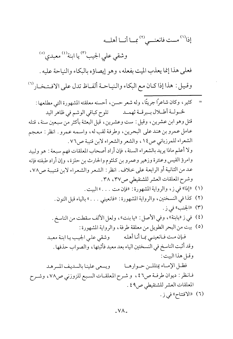 فانظر: ديوان طرفة ص ٤٦، وشرح المعلقات السبع للزوزني ص ٧٨، وشرح المعلقات العشر للشنقيطي ص ٤٩.