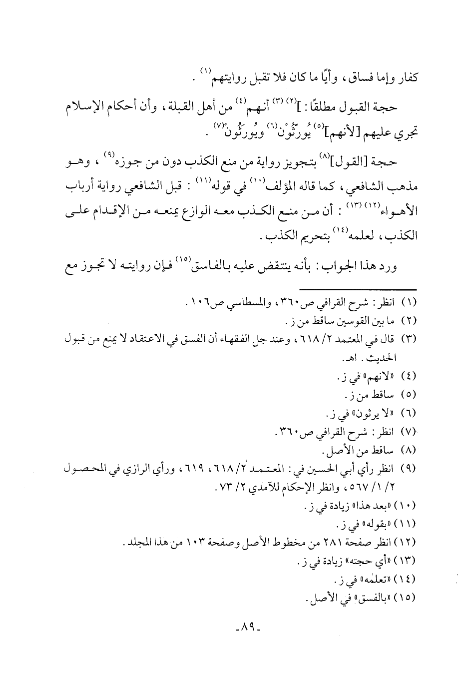 (٣) قال في المعتمد ٢/ ٦١٨، وعند جل الفقهاء أن الفسق في الاعتقاد لا يمنع من قبول الحديث. اهـ.