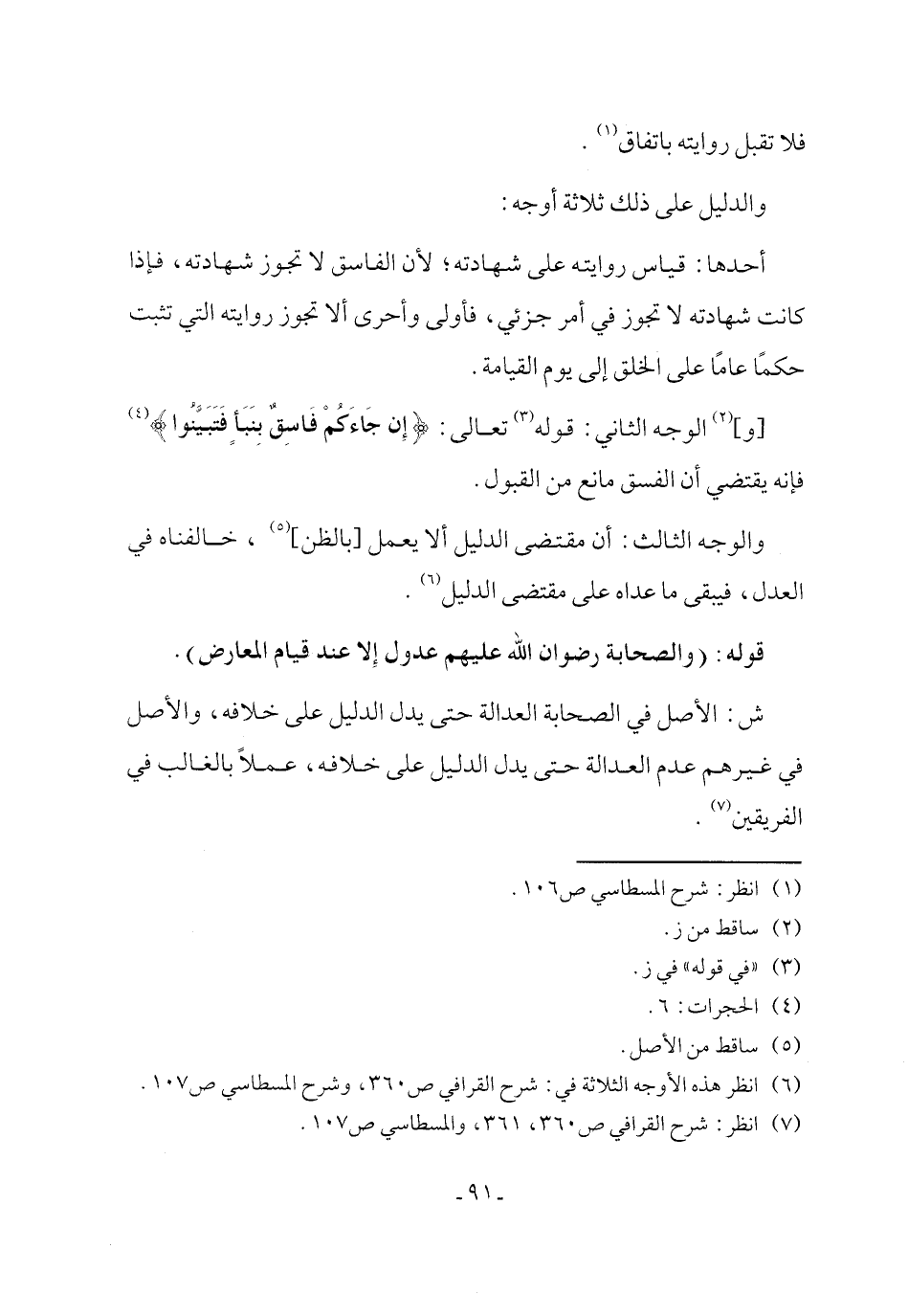 (٧) انظر: شرح القرافي ص ٣٦٠، ٣٦١، والمسطاسي ص ١٠٧.