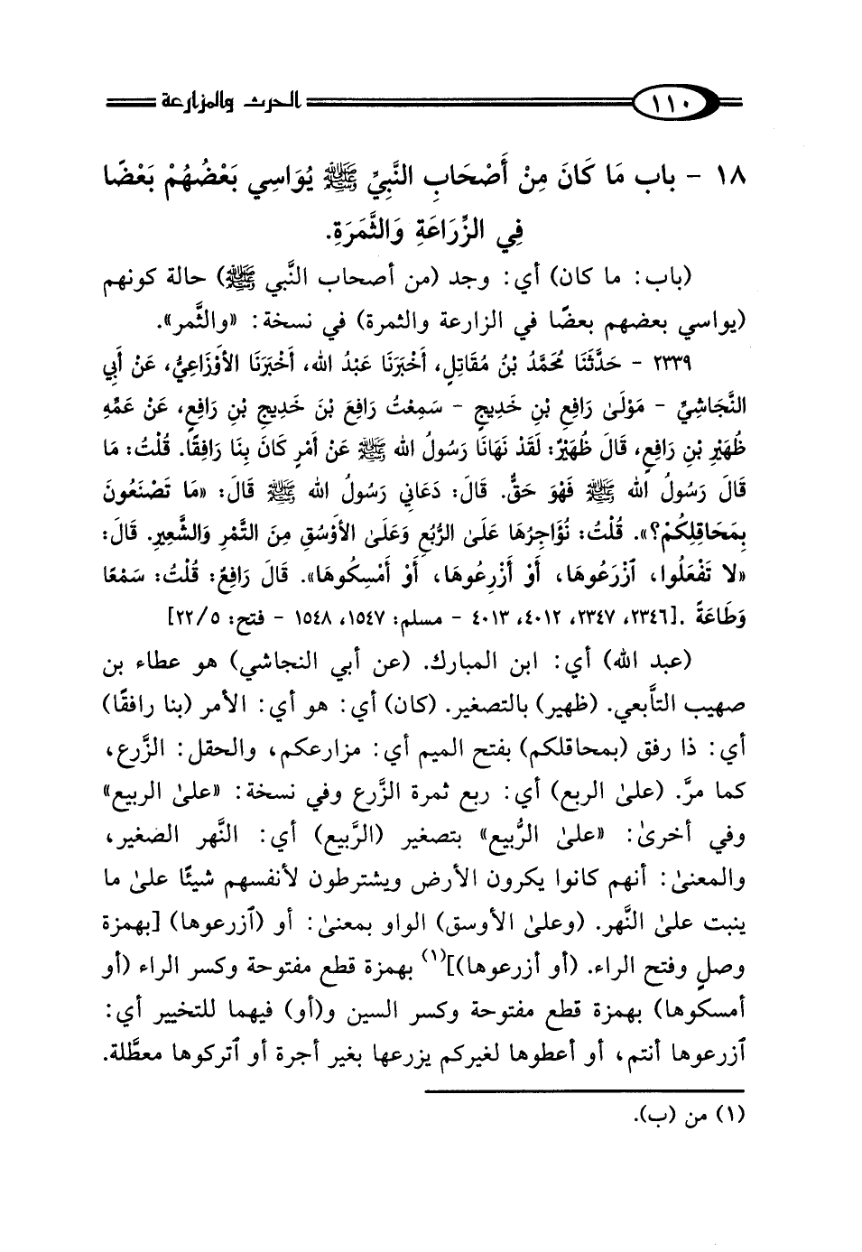 18 - بَابُ مَا كَانَ مِنْ أَصْحَابِ النَّبِيِّ صَلَّى اللهُ عَلَيْهِ وَسَلَّمَ يُوَاسِي بَعْضُهُمْ بَعْضًا فِي الزِّرَاعَةِ وَالثَّمَرَةِ