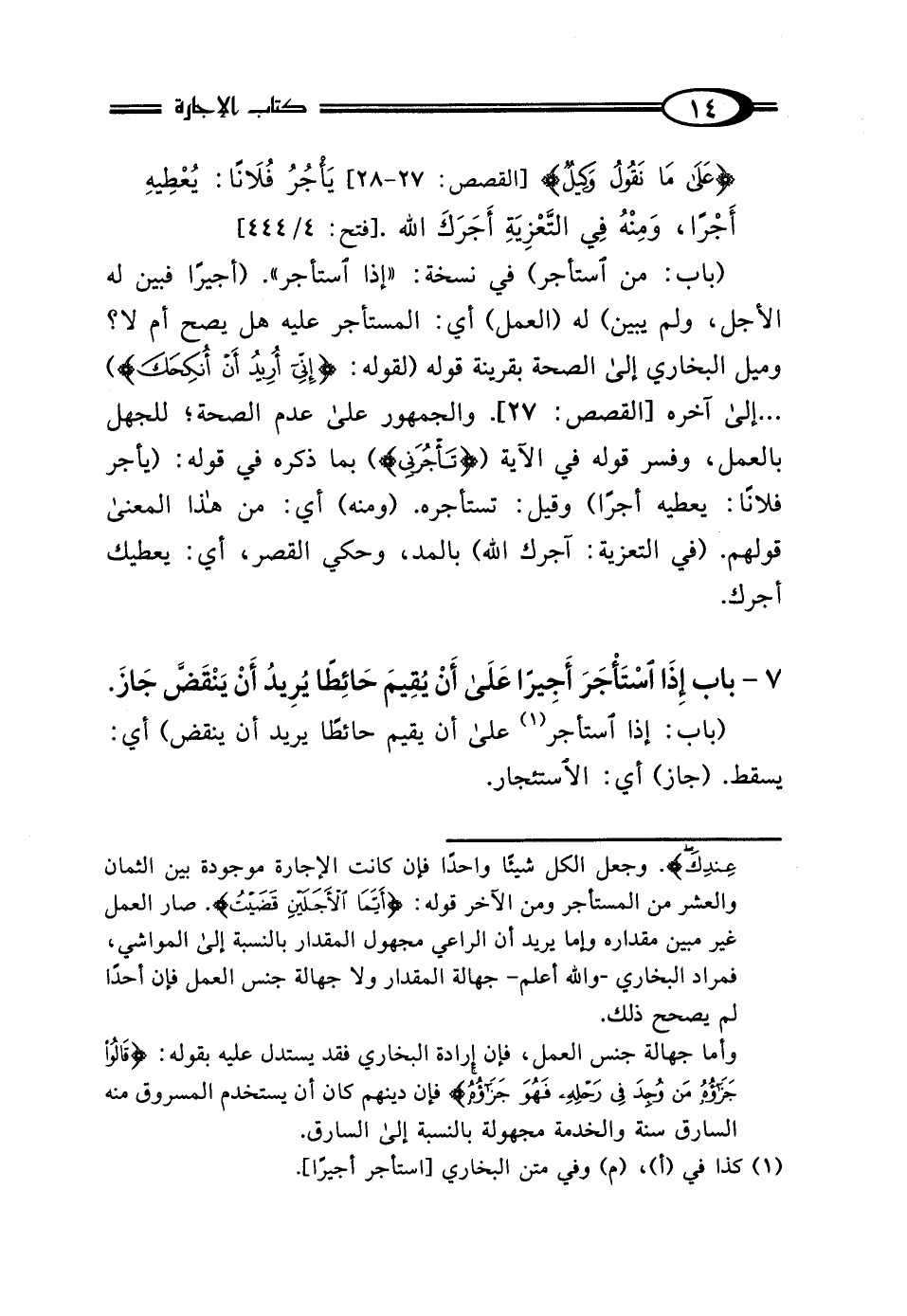= عِنْدِكَ}. وجعل الكل شيئًا واحدًا فإن كانت الإجارة موجودة بين الثمان والعشر من المستأجر ومن الآخر قوله: {أَيَّمَا الْأَجَلَيْنِ قَضَيْتُ}. صار العمل غير مبين مقداره وإما يريد أن الراعي مجهول المقدار بالنسبة إلى المواشي، فمراد البخاري - والله أعلم - جهالة المقدار ولا جهالة جنس العمل فإن أحدًا لم يصحح ذلك.