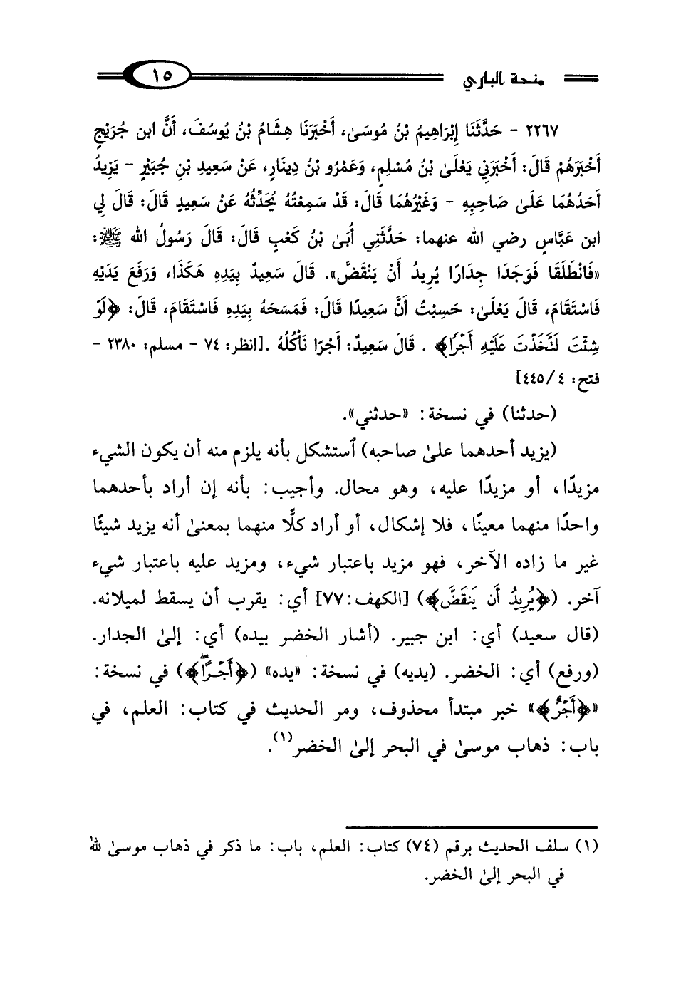 (¬1) سلف الحديث برقم (74) كتاب: العلم، باب: ما ذكر في ذهاب موسى لله في البحر إلى الخضر.