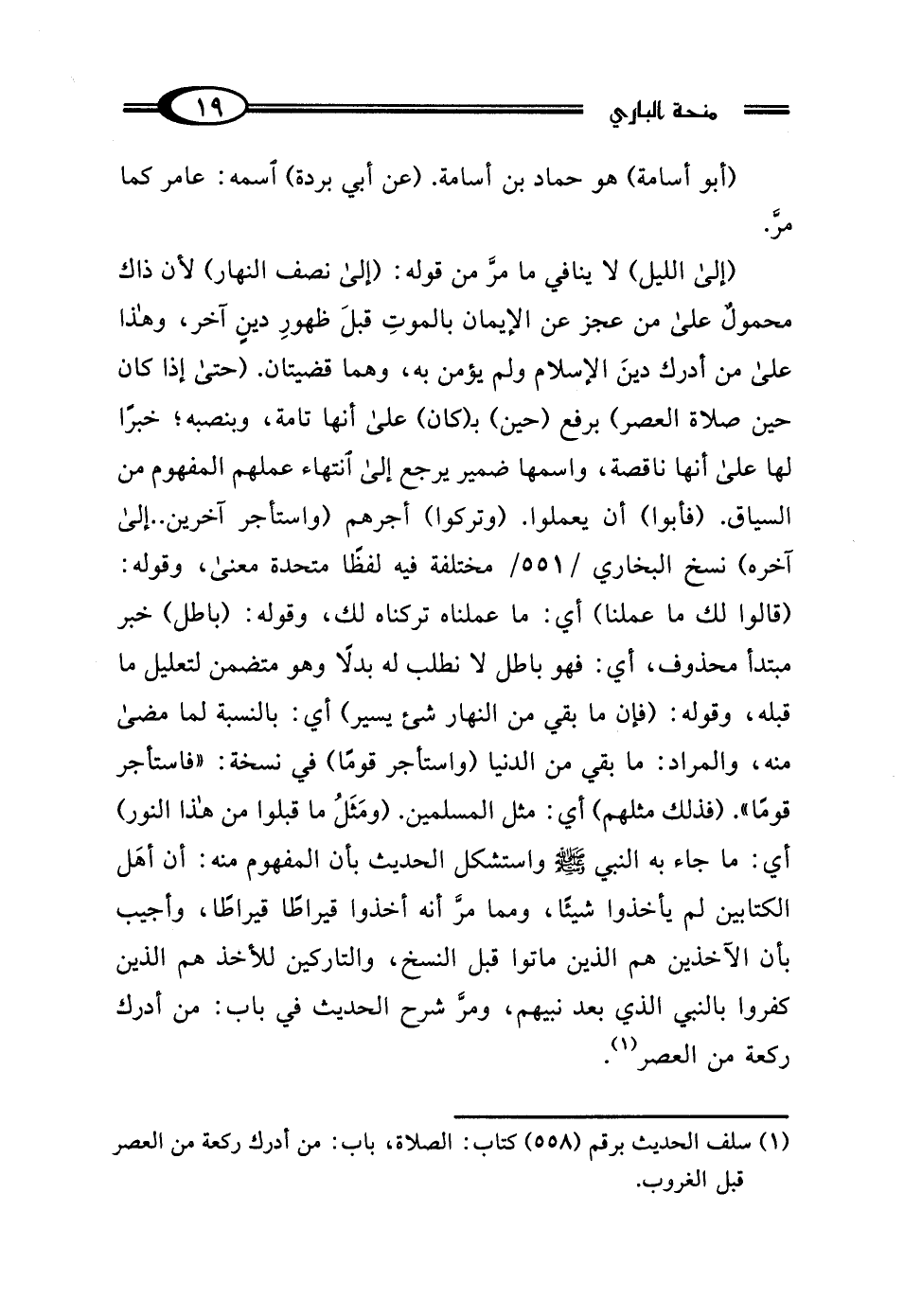 (¬1) سلف الحديث برقم (558) كتاب: الصلاة، باب: من أدرك ركعة من العصر قبل الغروب.
