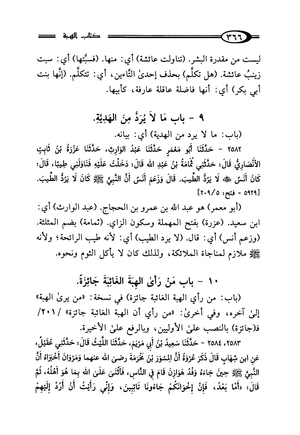ليست من مقدرة البشر. (تناولت عائشة) أي: منها. (فسبَّتها) أي: سبت زينبُ عائشة. (هل تكلَّم) بحذف إحدى التَّاءين، أي: تتكلَّم. (إنَّها بنت أبي بكر) أي: أنها فاضلة عاقلة عارفة، كأبيها.