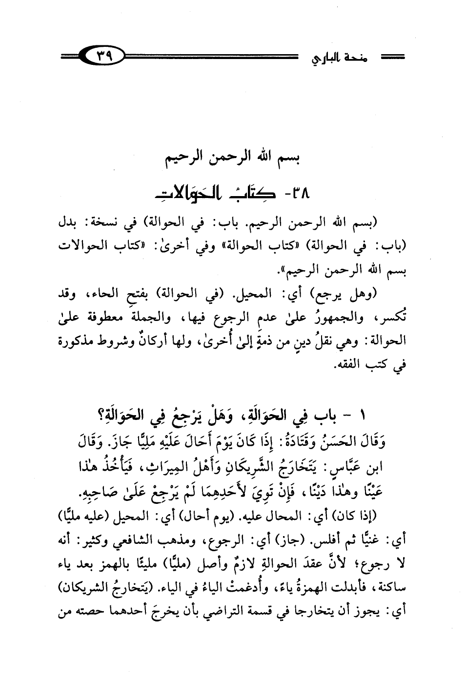 1 - بَابُ الحَوَالةِ، وَهَلْ يَرْجِعُ فِي الحَوَالةِ؟
