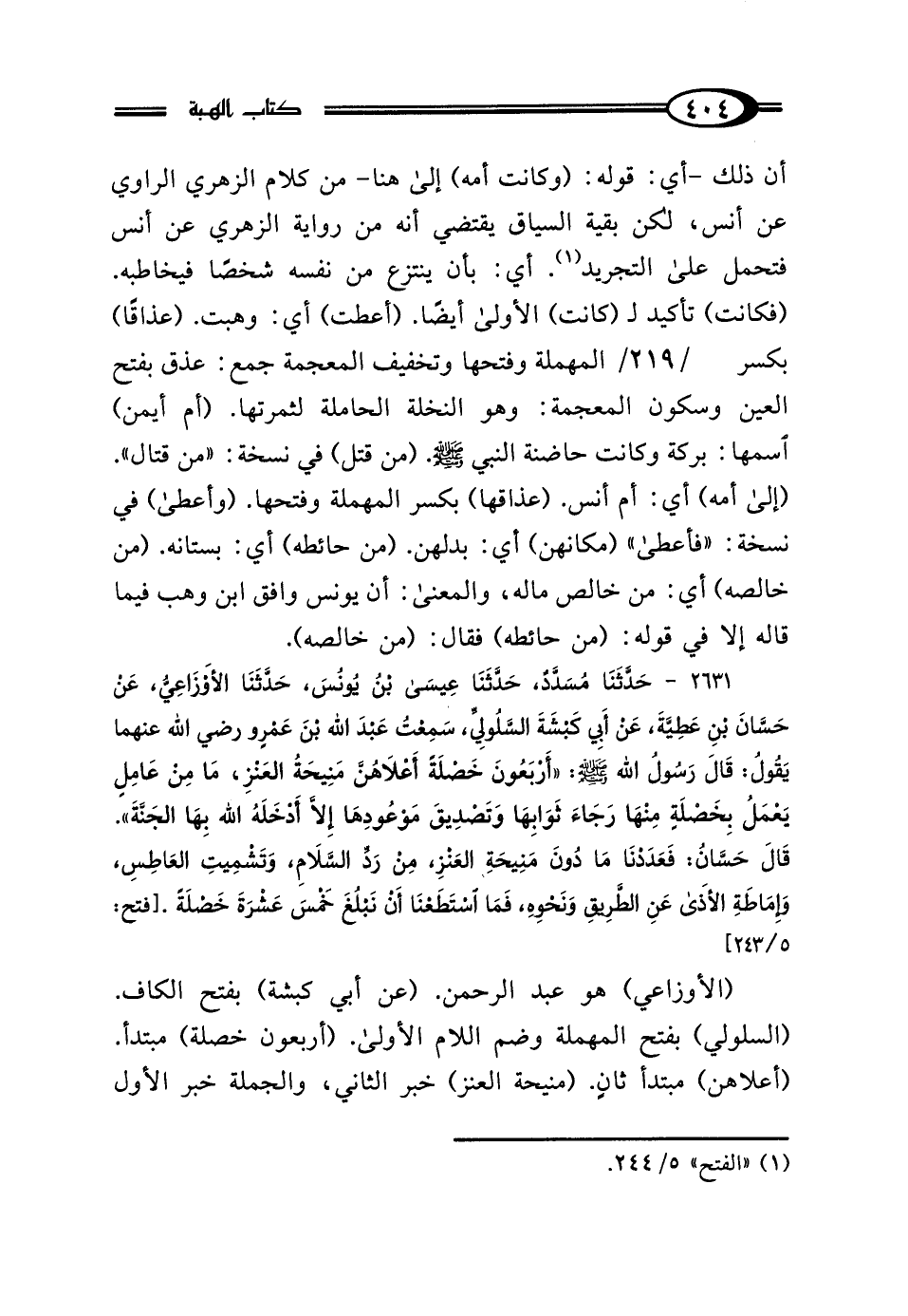 أن ذلك -أي: قوله: (وكانت أمه) إلى هنا- من كلام الزهري الراوي عن أنس، لكن بقية السياق يقتضي أنه من رواية الزهري عن أنس فتحمل على التجريد (¬1). أي: بأن ينتزع من نفسه شخصًا فيخاطبه. (فكانت) تأكيد و (كانت) الأولى أيضًا. (أعطت) أي: وهبت. (عذاقًا) بكسر المهملة وفتحها وتخفيف المعجمة جمع: عذق بفتح العين وسكون المعجمة: وهو النخلة الحاملة لثمرتها. (أم أيمن) اسمها: بركة وكانت حاضنة النبي - صلى الله عليه وسلم -. (من قتل) في نسخة: "من قتال". (إلى أمه) أي: أم أنس. (عذاقها) بكسر المهملة وفتحها. (وأعطى) في نسخة: "فأعطى" (مكانهن) أي: بدلهن. (من حائطه) أي: بستانه. (من خالصه) أي: من خالص ماله، والمعنى: أن يونس وافق ابن وهب فيما قاله إلا في قوله: (من حائطه) فقال: (من خالصه).