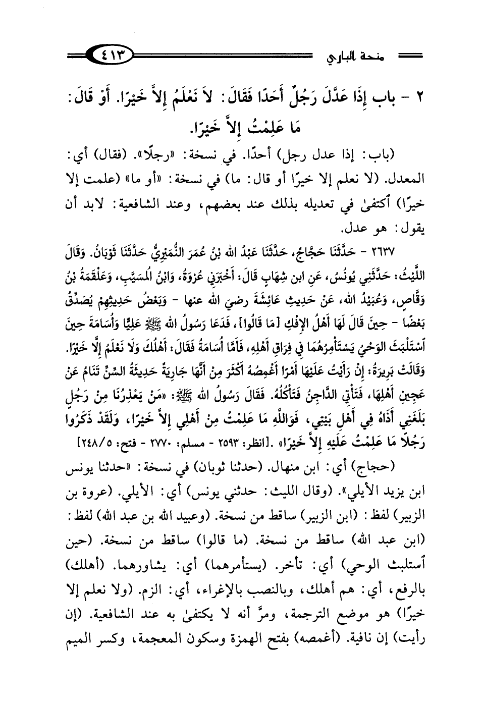 (حجاج) أي: ابن منهال. (حدثنا ثوبان) في نسخة: "حدثنا يونس بن يزيد الأيلي". (وقال الليث: حدثني يونس) أي: الأيلي. (عروة بن الزبير) لفظ: (ابن الزبير) ساقط من نسخة. (وعبيد الله بن عبد الله) لفظ: (ابن عبد الله) ساقط من نسخة. (ما قالوا) ساقط من نسخة. (حين استلبث الوحي) أي: تأخر. (يستأمرهما) أي: يشاورهما. (أهلك) بالرفع، أي: هم أهلك، وبالنصب بالإغراء، أي: الزم. (ولا نعلم إلا خيرًا) هو موضع الترجمة، ومرَّ أنه لا يكتفى به عند الشافعية. (إن رأيت) إن نافية. (أغمصه) بفتح الهمزة وسكون المعجمة، وكسر الميم