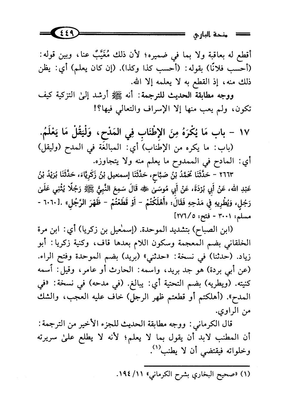 (¬1) "صحيح البخاري بشرح الكرماني" 11/ 194.