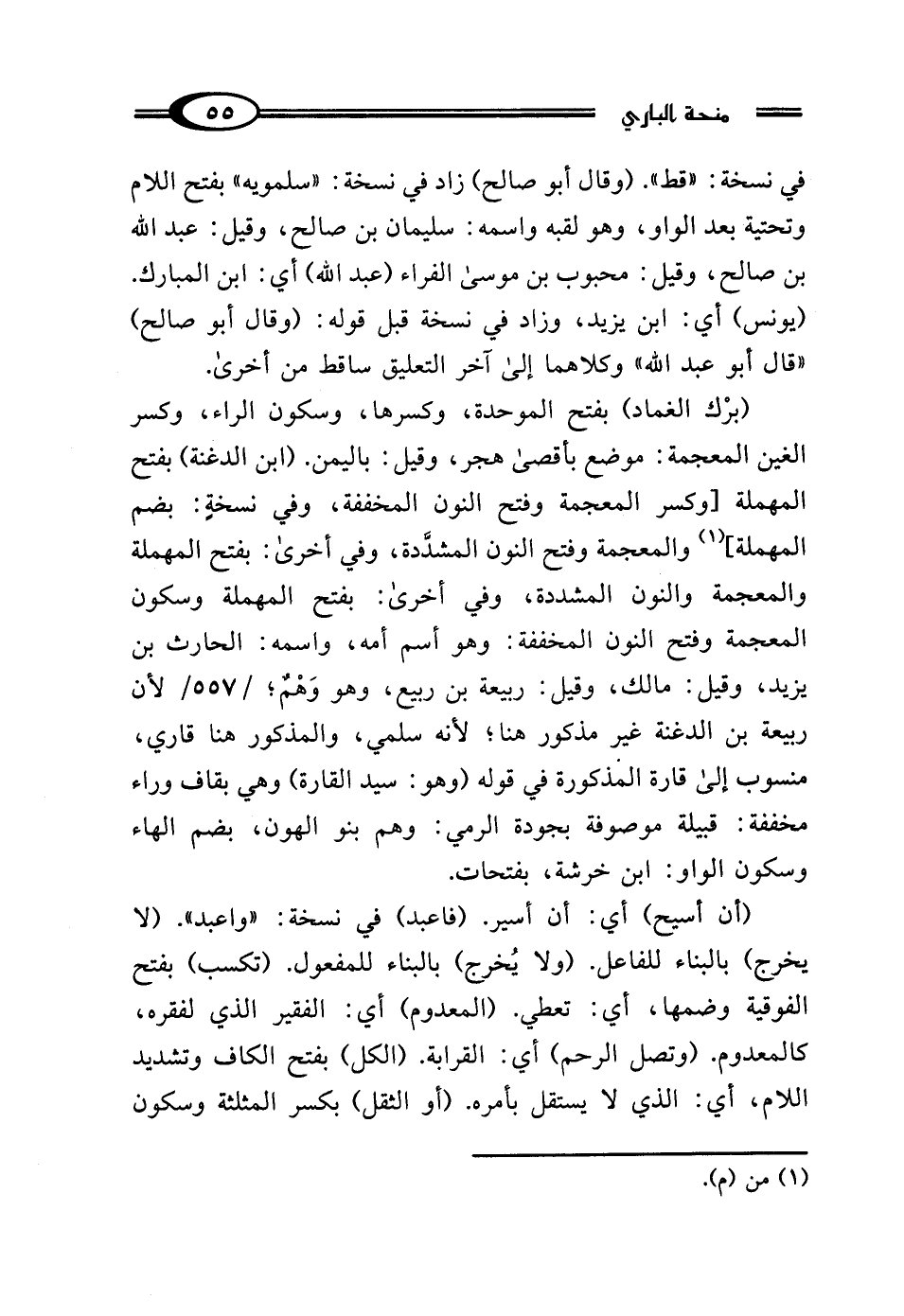 في نسخة: "قط". (وقال أبو صالح) زاد في نسخة: "سلمويه" بفتح اللام وتحتية بعد الواو، وهو لقبه واسمه: سليمان بن صالح، وقيل: عبد الله بن صالح، وقيل: محبوب بن موسى الفراء (عبد الله) أي: ابن المبارك.