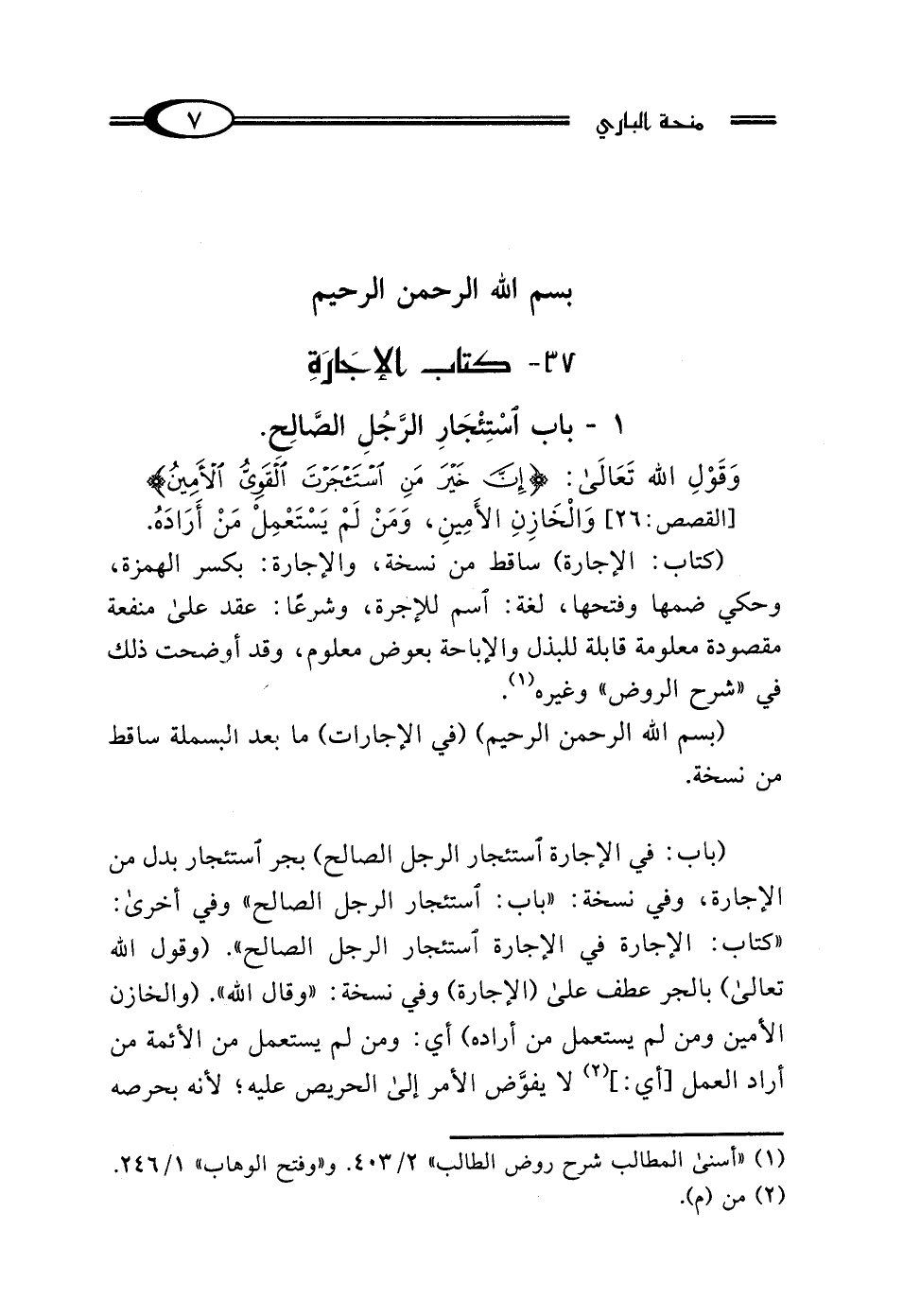 (بِسْمِ اللَّهِ الرَّحْمَنِ الرَّحِيمِ) (في الإجارات) ما حعد البسملة ساقط من نسخ.