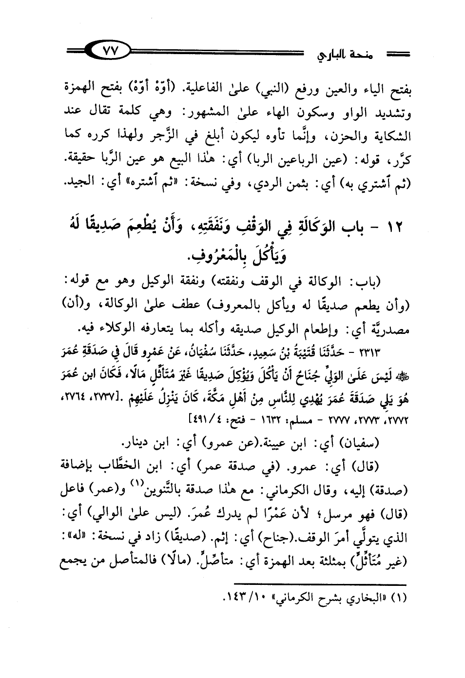 2313 - حَدَّثَنَا قُتَيْبَةُ بْنُ سَعِيدٍ، حَدَّثَنَا سُفْيَانُ، عَنْ عَمْرٍو، قَال فِي صَدَقَةِ عُمَرَ رَضِيَ اللَّهُ عَنْهُ: "لَيْسَ عَلَى الوَلِيِّ جُنَاحٌ أَنْ يَأْكُلَ وَيُؤْكِلَ صَدِيقًا لَهُ غَيْرَ مُتَأَثِّلٍ مَالًا" فَكَانَ ابْنُ عُمَرَ "هُوَ يَلِي صَدَقَةَ عُمَرَ، يُهْدِي لِنَاسٍ مِنْ أَهْلِ مَكَّةَ كَانَ يَنْزِلُ عَلَيْهِمْ".