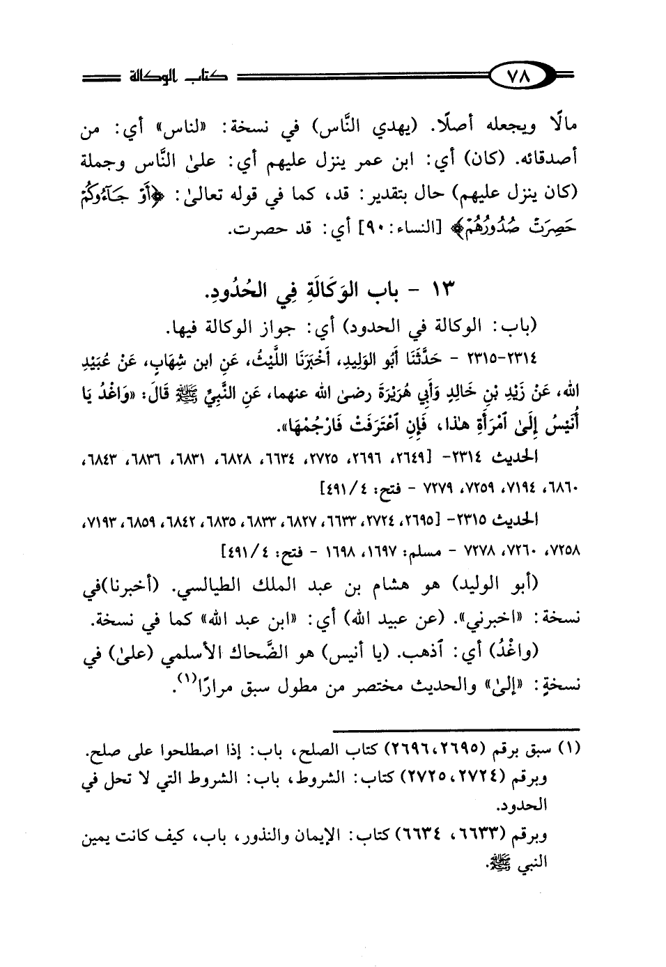 13 - بَابُ الوَكَالةِ فِي الحُدُودِ